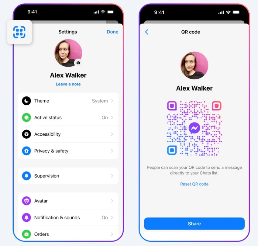 Messenger to teraz także kolejny sposób na nawiązywanie znajomości. Jego nieobecność bardzo mnie zresztą dziwiła, bowiem napisanie do kogoś nowego bywa niezwykle irytujące. Ścieżka prowadząca do tego kroku jest wyboista i nie do końca przyjemna. Zmieni się to za sprawą dodania kodu QR – można go wygenerować oraz wysłać/pokazać wybranej przez nas osobie. Po zeskanowaniu otworzy się konwersacja, gdzie od razu zaczniemy wymieniać sobie wiadomości. Istnieje też opcja wysłania specjalnego linku zapraszającego, co także należy uznać za przydatne.