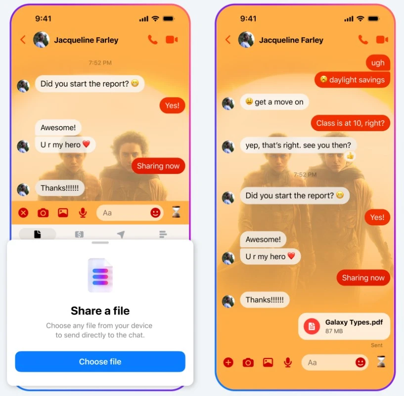 Ostatnią nowinką jest wyczekiwana opcja wysyłania plików ważących maksymalnie 100 MB – zwiększenie tego limitu było postulowane przez społeczność od długiego czasu. Teraz na szczęście Meta postanowiła ulec konsumentom, to bardzo dobra wiadomość. Należy przy okazji wspomnieć, iż Messenger obsługuje wszystkie główne formaty, łącznie z dokumentami tekstowymi, PDF czy arkuszami kalkulacyjnymi.