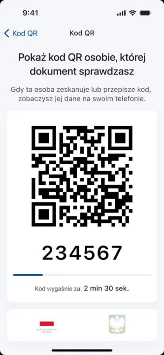 Wtedy nadchodzi kolej użytkownika. Należy uruchomić aplikację mObywatel wraz z aktywną funkcją mDowód. Wystarczy wejść do odpowiedniej sekcji, wybrać pozycję „Potwierdź swoje dane” oraz „Rozpocznij”. Potem powinien pojawić się widok z tylnej kamery umożliwiający zeskanowanie widocznego powyżej kodu QR.