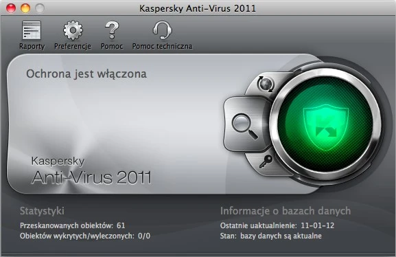 Okno główne Kaspersky Anti-Virus 2011 for Mac