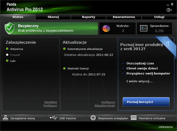 Całkowicie funkcjonalne, 30-dniowe wersje najnowszych produktów dostępne są do pobrania za darmo z naszego portalu: Panda Antivirus Pro 2012, Panda Internet Security 2012 i Panda Global Protection 2012.