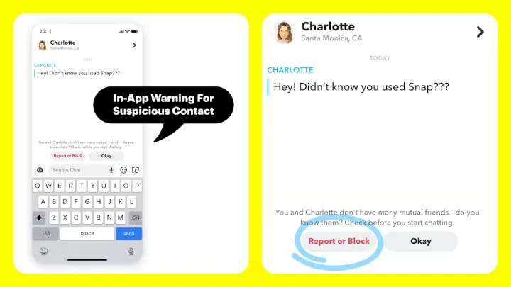 Wprowadzone zmiany mają przede wszystkim sprawić, że spadnie szansa na zagrożenia ze strony obcych ludzi. Snapchat poinformuje o tym, iż użytkownik otrzymał komunikat od kogoś spoza wspólnego kręgu osób. W przypadku nieposiadania wspólnych znajomych – alert pozwoli na zgłoszenie lub zablokowanie kogoś, w razie stwierdzenia, że nie chcemy wymieniać się z nim wiadomościami.
