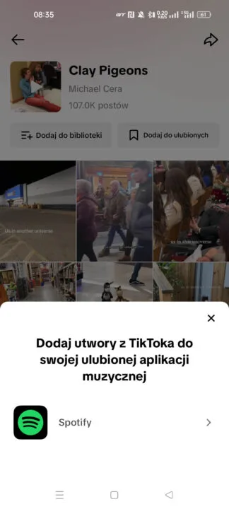 Wtedy też będziecie musieli wskazać platformę, do której chcecie dodać dany utwór. TikTok wykrywa tylko usługi znajdujące się na urządzeniu, więc w moim przypadku było to Spotify. Opublikowane przez firmę grafiki sugerują natomiast, iż funkcja bez problemu działa też z Apple Music.