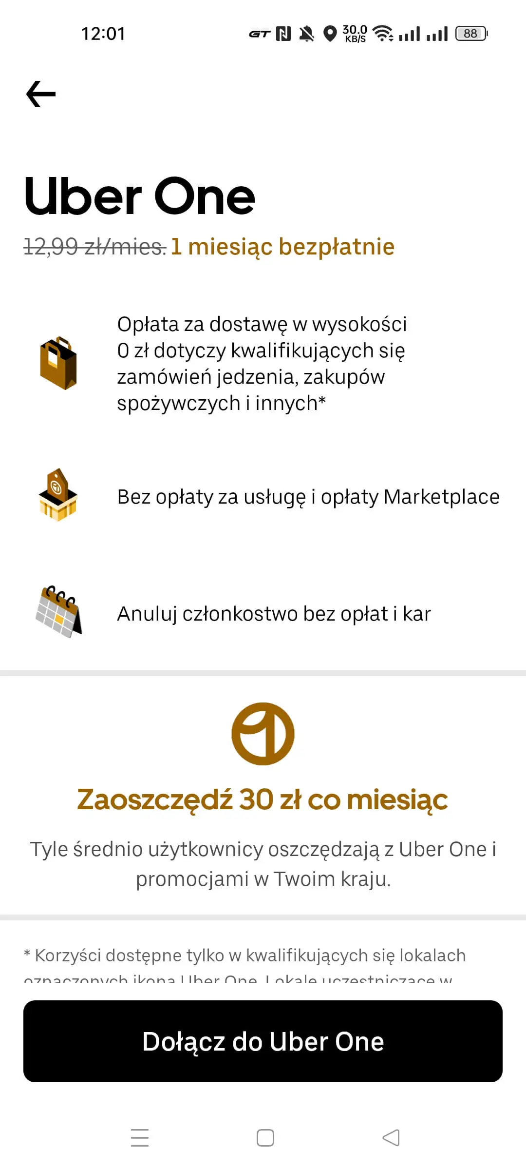 Uber One kusi darmowymi dostawami