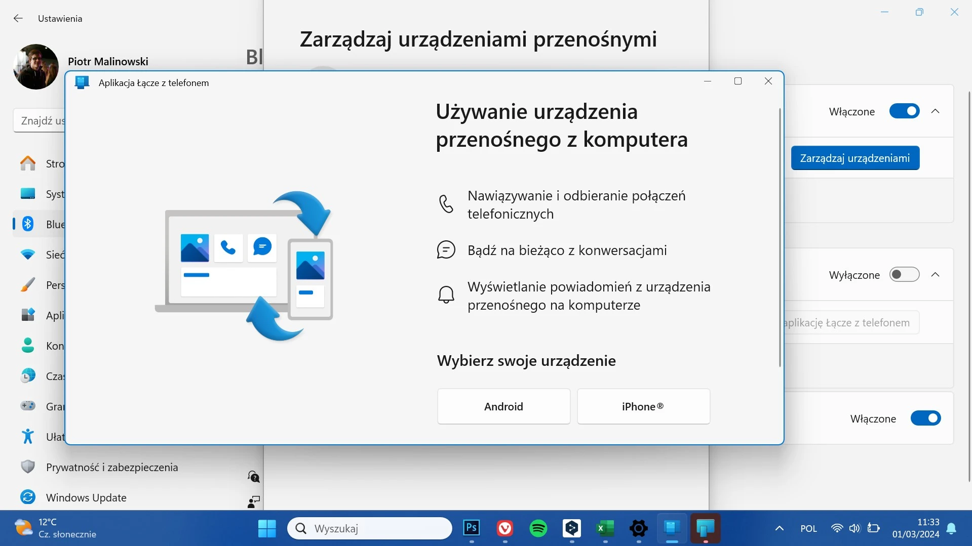 Sama integracja jest natomiast bardzo prosta. Na samym początku należy rzecz jasna pobrać wyżej wymienione aplikacje (możecie to zrobić z poziomu naszej bazy danych). Musicie także aktywować Bluetooth – zarówno na smartfonie, jak i komputerze. Następnie wystarczy, że przejdziecie do sekcji ustawień w systemie Windows 11 i znajdziecie zakładkę „Bluetooth i urządzenia”.
