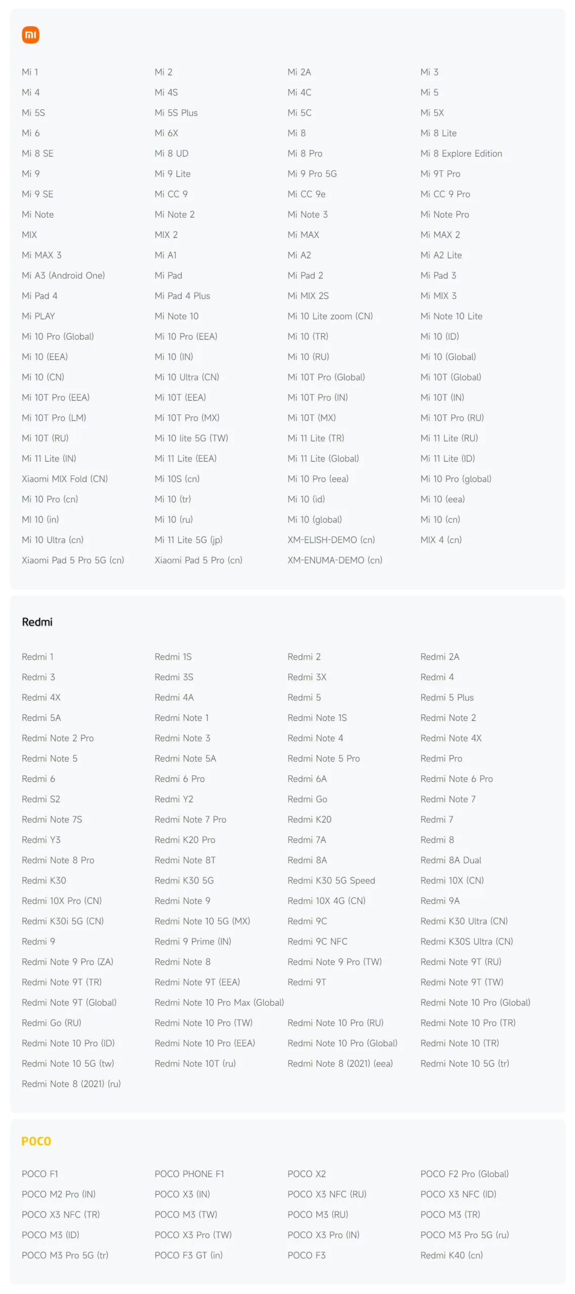 Jeżeli chcesz wiedzieć, jak długo twój smartfon Mi, Redmi lub POCO będzie wspierany, odwiedź specjalną stronę Xiaomi.