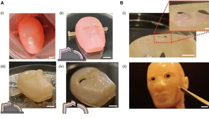 Na Uniwersytecie Tokijskim, pod kierunkiem profesora Shoji Takeuchiego, sztucznie hodowana tkanka skórna została przymocowana do twarzy robotów przy użyciu perforacyjnych kotwic wydrukowanych w technologii 3D. Ta skóra, inspirowana ludzką tkanką, składa się z żywych komórek i ma zdolność do samodzielnego gojenia się.