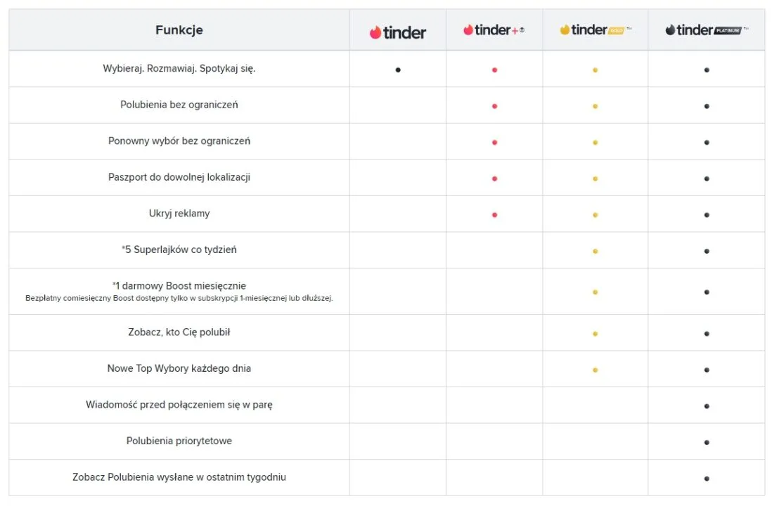 Nie zabraknie także opcji ukrywania reklam czy wyświetlania wysłanych przez siebie polubień w ciągu ostatnich 7 dni. Co jednak w tym wszystkim najśmieszniejsze: korzyści w ramach abonamentu są dostępne wyłącznie w aplikacji, nie zadziałają w przeglądarkowej wersji platformy. Zawiodą się także osoby, które myślą, że zapłacą 2000 zł miesięcznie i cały Tinder stanie dla nich otworem.