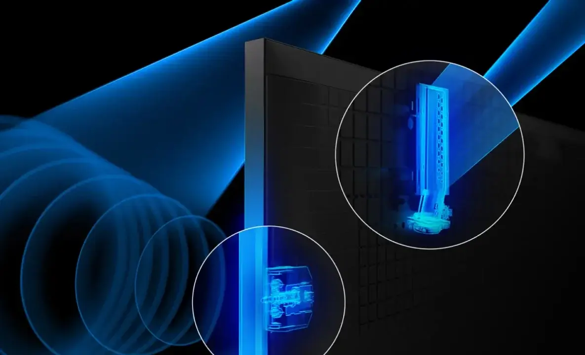 Ilość stref wygaszania to jedno, ale nie mniej ważny jest algorytm. Tu Sony potrafi pokazać klasę. Wspomniałem o systemie audio – w Bravia 9 będzie on dostępny w konfiguracji 2.2.2 (70W mocy) tj.: dwa 10W głośniki średnie, dwa 5W tweetery zlokalizowane w okolicach bocznej krawędzi, dwa 10W jednostki niskotonowe umieszczone w górnej części TV oraz dwa 10W subwoofery.