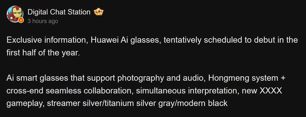 Według przecieków Huawei może wprowadzić na rynek swoje najnowsze inteligentne okulary AI jeszcze w pierwszej połowie tego roku, jednak producent nie potwierdził oficjalnie tych doniesień.