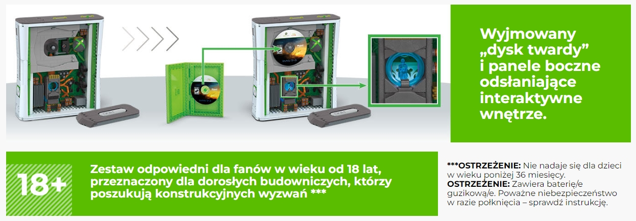 Trudno to ocenić bez zagłębiania się w szczegóły. Zestaw składa się z 1342 do złożenia i jest wręcz naszpikowanymi klimatycznymi detalami. Mowa tu nie tylko o kontrolerze, ale też replice gry HALO 3 czy podświetlanym przycisku zasilania, podświetlanym przycisku głównym czy podświetlanym logo Xbox. Całość na szczęście wyróżnia się zadowalającymi proporcjami, mamy do czynienia z produktem mniejszym o 25% niż prawdziwy Xbox 360.