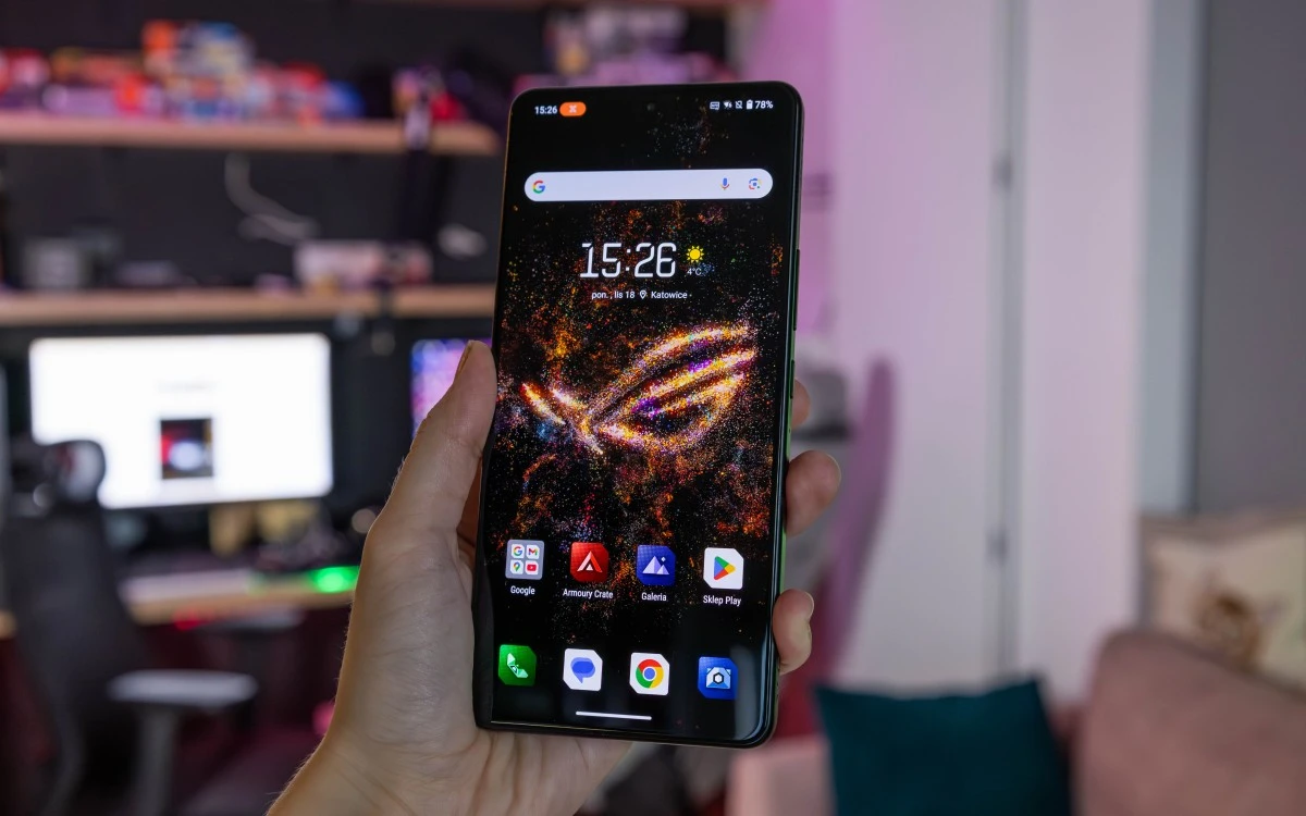 ASUS ROG Phone 9 Pro wykorzystuje dokładnie taki sam wyświetlacz, co poprzednik – panel LTPO AMOLED o przekątnej 6,78 cala i rozdzielczości 2400 x 1080 pikseli. Niemniej w trybie automatycznym w grach oferuje on teraz nawet 185 Hz. Ręcznie możemy ustawić na nim stałe 165 Hz odświeżania, które i tak gwarantują niesamowicie wysoką płynność animacji.