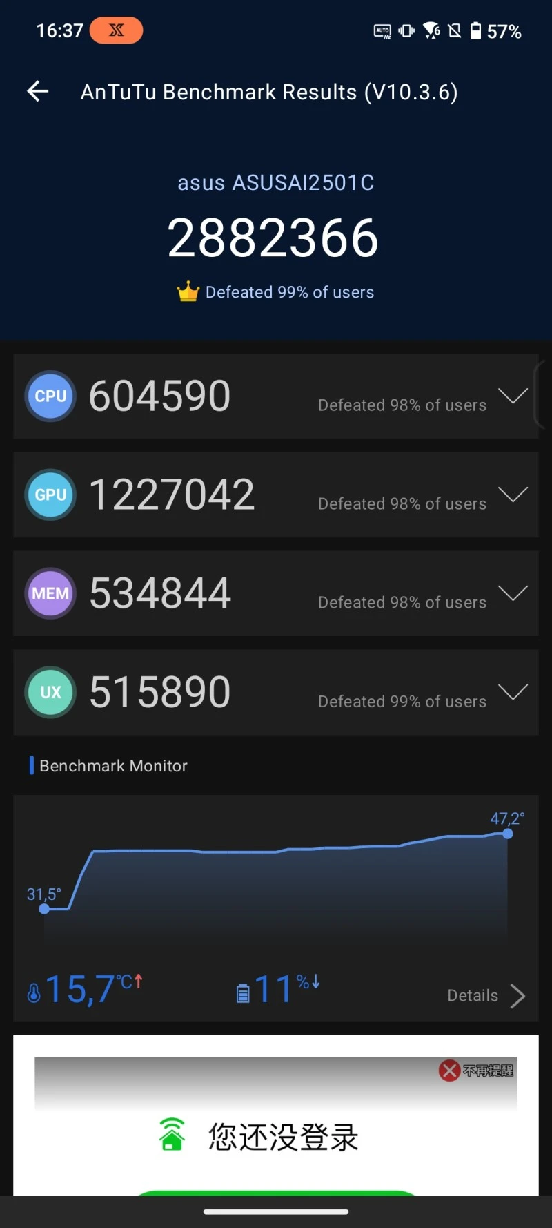 No cóż, w parze z 24 GB pamięci RAM LPDDR5X ASUS ROG Phone 9 Pro wydajnością naprawdę nie grzeszy. W benchmarku AnTuTu 10 udało mu się bowiem wyciągnąć aż 2882366 punktów w trybie X (najwyższej wydajności). W benchmarku Geekbench 6 zdobył zaś 3041 punktów w jednordzeniowym teście CPU, 9609 punktów w wielordzeniowym teście CPU i 18 906 punktów w teście GPU.
