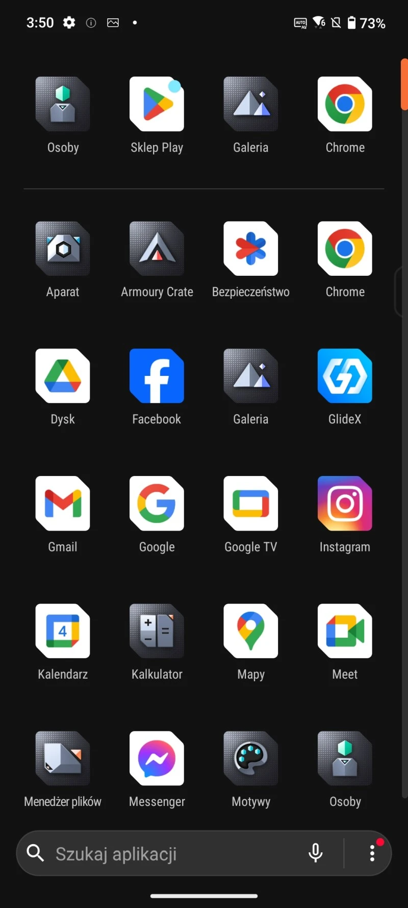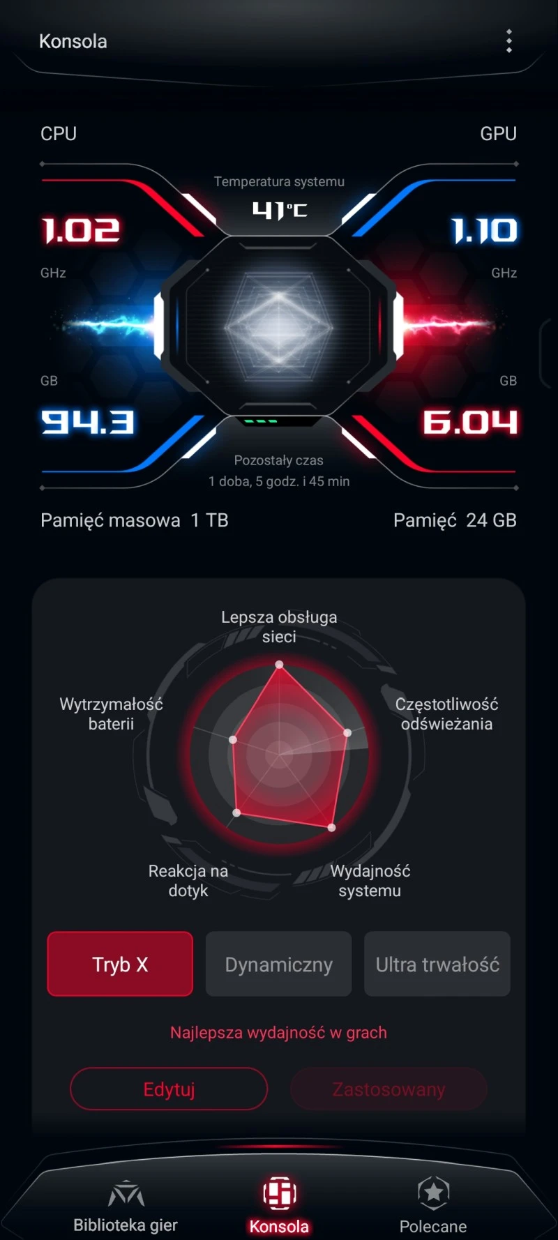 Opcje personalizacji uzupełnia tu aplikacja Motywy z licznymi motywami i tapetami do pobrania. Jest też generator tapet AI, ale o dość ograniczonych możliwościach. Jeśli zaś chodzi o inne aplikacje preinstalowane na smartfonie, to nie jest ich zbyt wiele. Poza aplikacjami Google producent zainstalował na urządzeniu kilka własnych aplikacji takich jak wspominana aplikacja AniMe Play i Armoury Crate. Armoury Crate to taki hub z naszą biblioteką gier, który dodatkowo pozwala zmieniać tryby wydajności smartfonu, personalizować macierz AniMe Vision, zarządzać zewnętrznym coolerem i nie tylko.