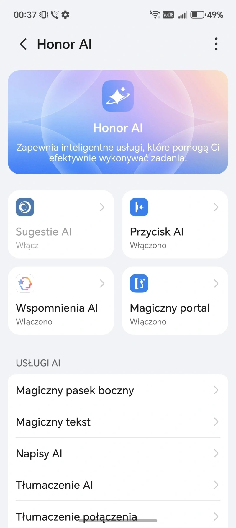 HONOR chwali się oczywiście funkcjami AI. Telefon zapewnia dostęp nie tylko do asystenta Gemini i funkcji AI w edytorze zdjęć, ale też takich dodatków jak opcja tworzenia transkrypcji na żywo (także w języku polskim), streszczania lub redagowania notatek przez AI, wykrywania deepfake’ów w rozmowach wideo i nie tylko. Jest też Magiczny portal do przenoszenia tekstu i obrazów między aplikacjami.