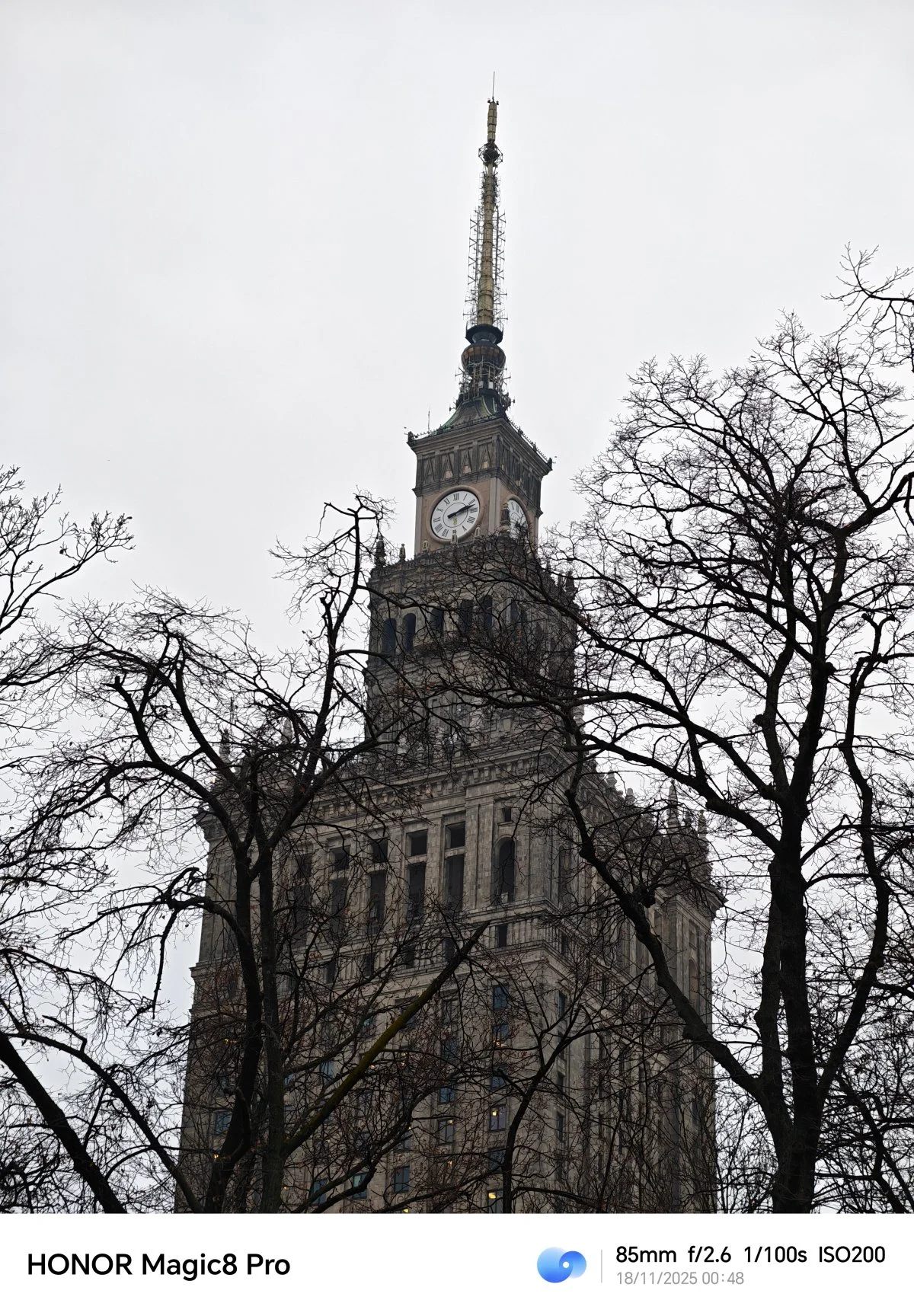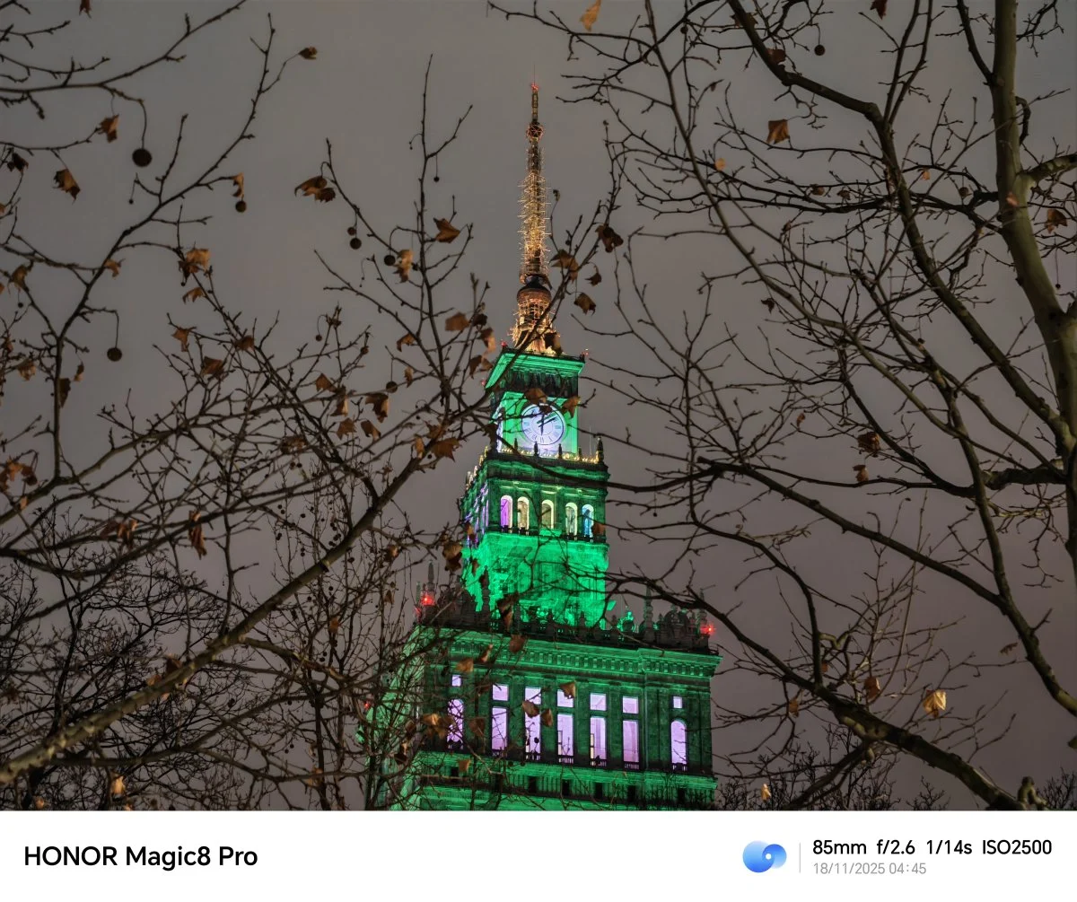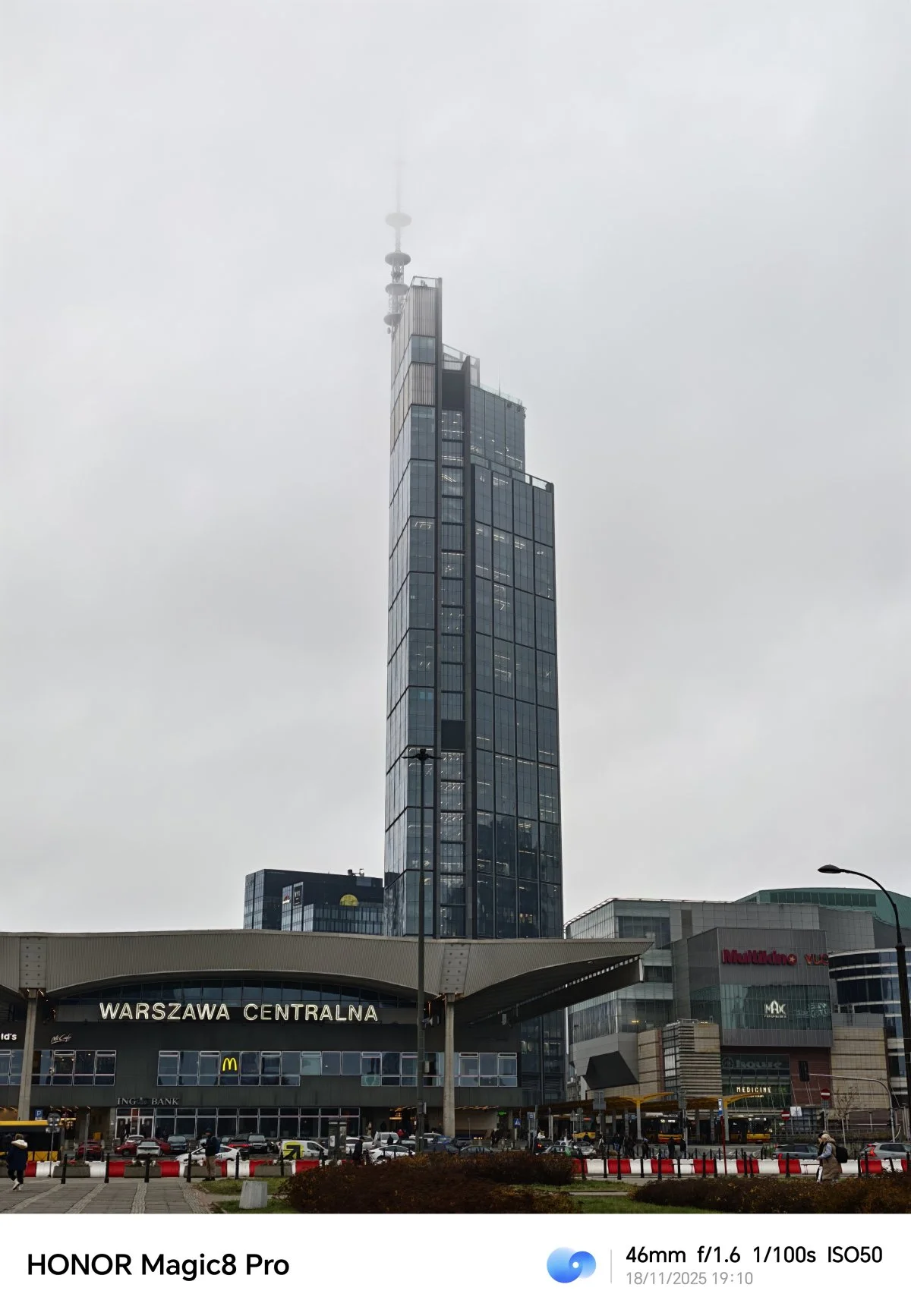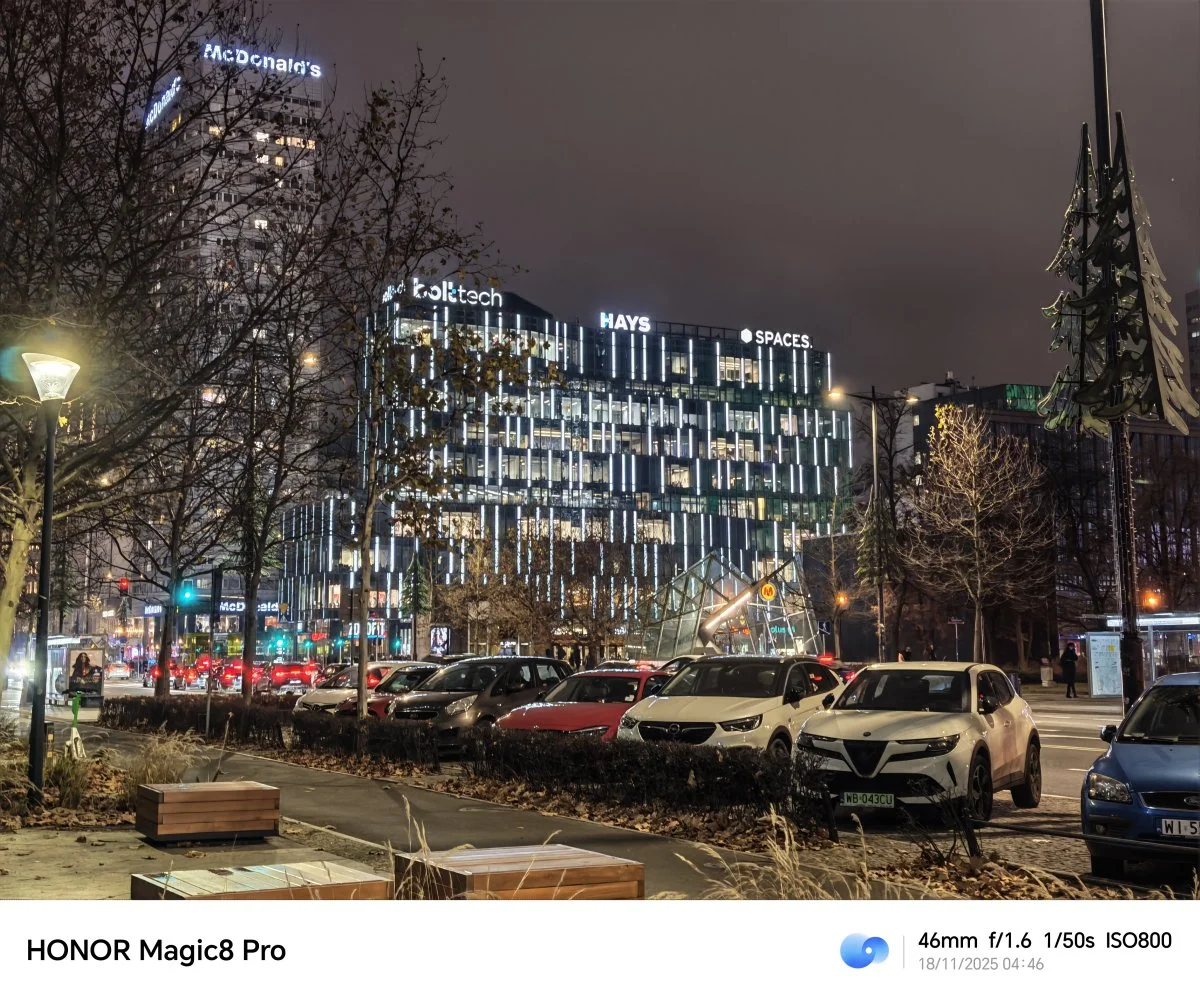 Słuchajcie, w ogólnym ujęciu HONOR Magic8 Pro robi ładne zdjęcia. Nie można tu narzekać na ilość detali czy to jak radzi sobie teleobiektyw z optycznym zoomem. Ba, nawet cyfrowy zoom w wielu sytuacjach więcej niż daje radę. Myślę jednak, że od flagowca, zwłaszcza tak wycenionego, można oczekiwać więcej. Na jego fotografiach jestem w stanie dostrzec szereg kluczowych niedociągnięć. Po pierwsze, jego aparaty mają tendencję do rozświetlania nieba. Tam gdzie w praktyce było ono ciemnoszare, algorytmy zapisywały je jako niemalże białe. Po drugie, kontrast bywa przesadzony, a cienie… zbyt ciemne. Aparatem ultraszerokokątnym łatwo zrobić zdjęcie poruszone, zwłaszcza nocą. Jak widać sprzęt to nie wszystko, bo HONOR ewidentnie nie dopracował jeszcze algorytmów, które przetwarzają jego fotografie.