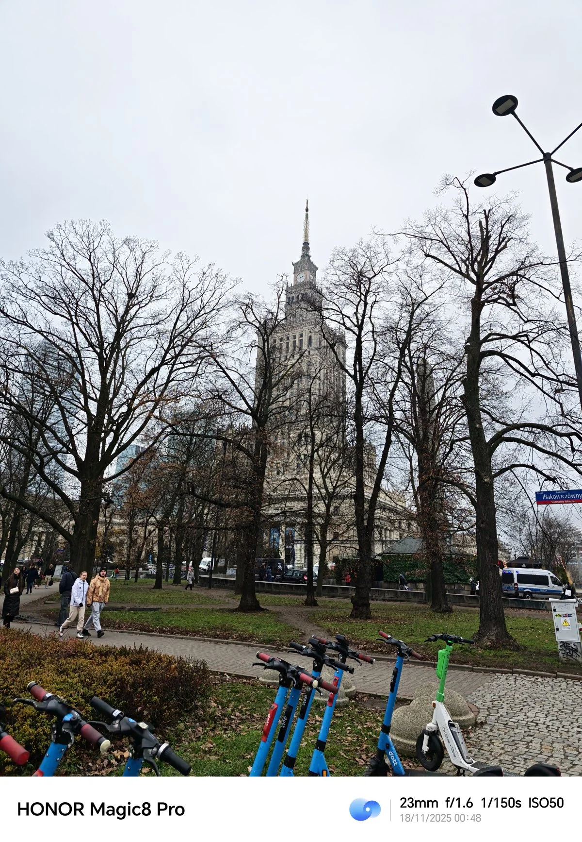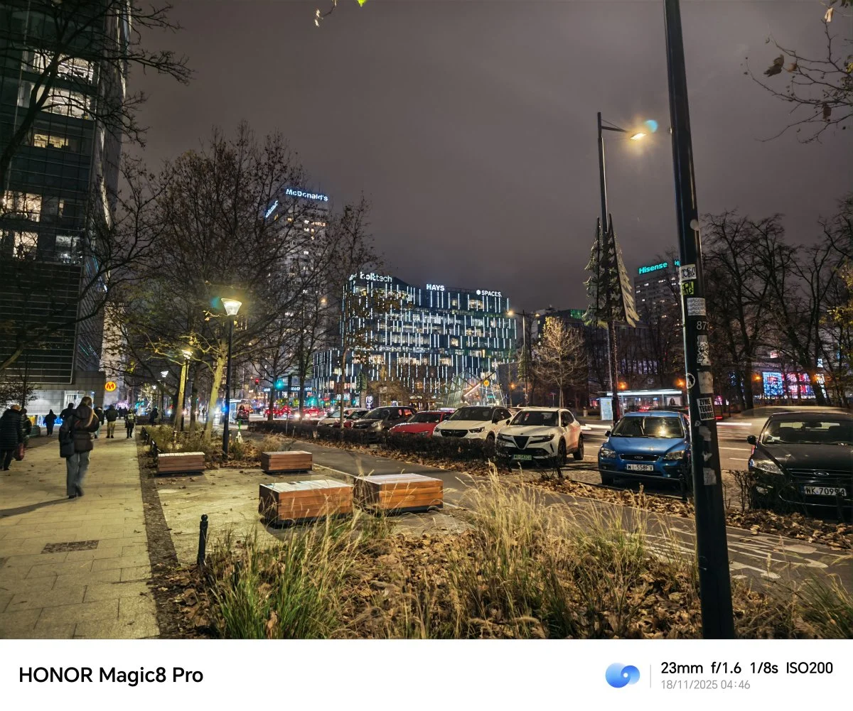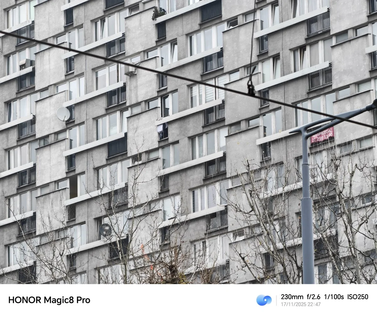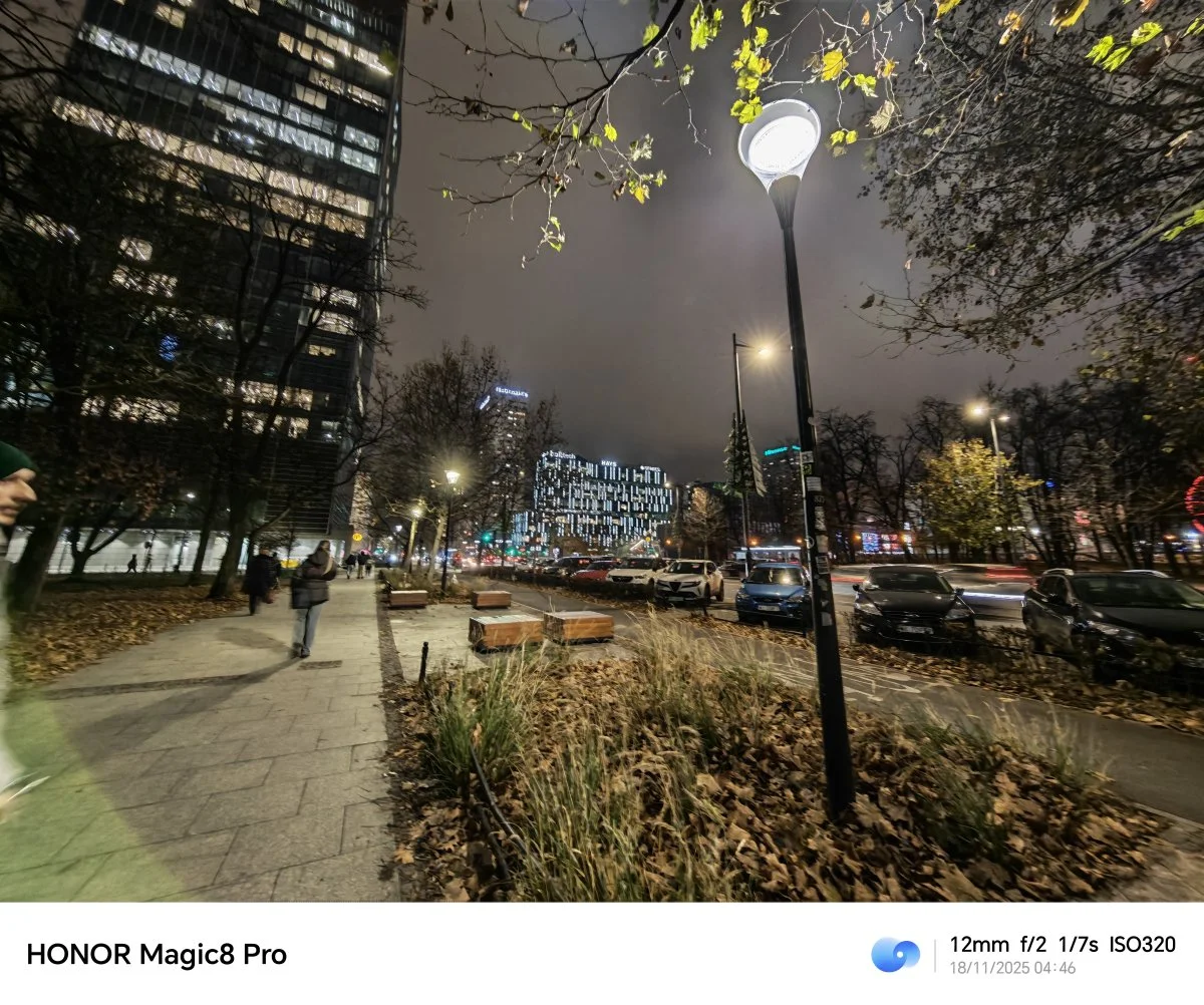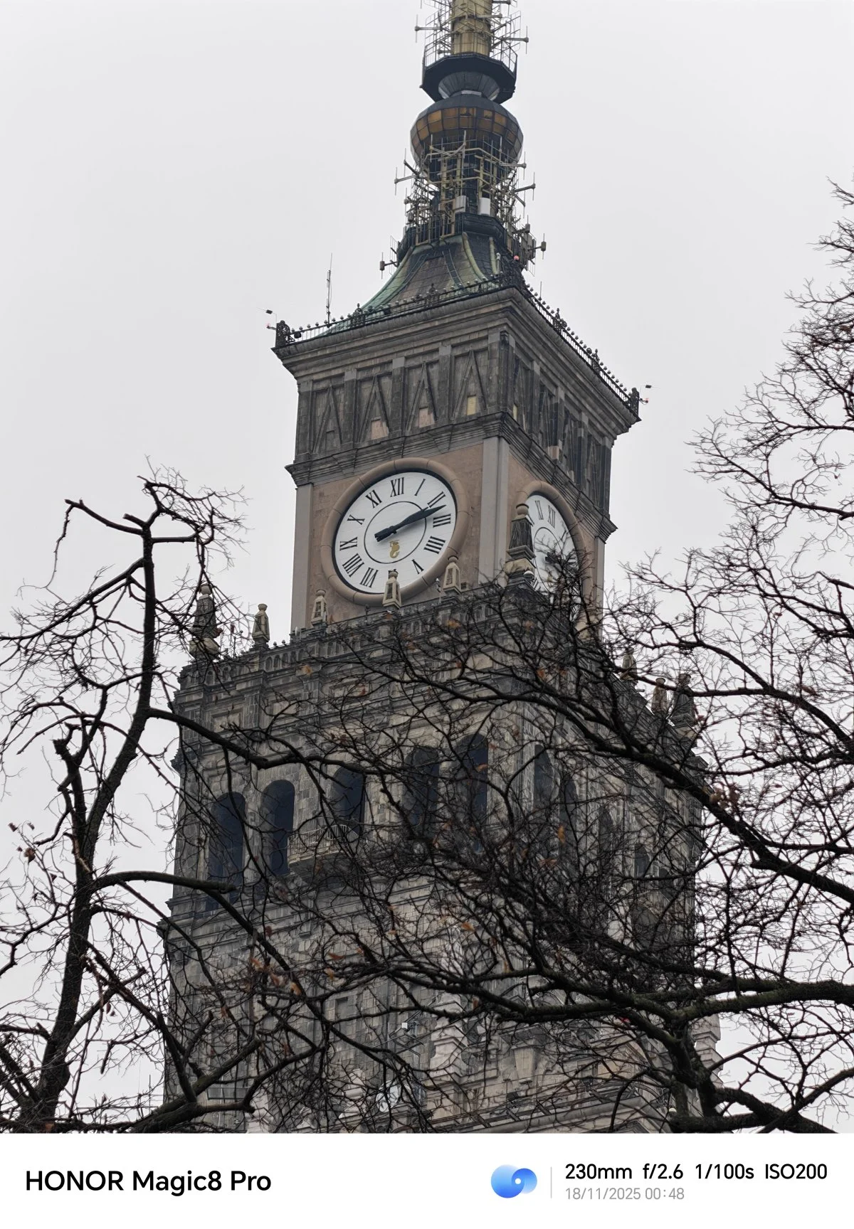Słuchajcie, w ogólnym ujęciu HONOR Magic8 Pro robi ładne zdjęcia. Nie można tu narzekać na ilość detali czy to jak radzi sobie teleobiektyw z optycznym zoomem. Ba, nawet cyfrowy zoom w wielu sytuacjach więcej niż daje radę. Myślę jednak, że od flagowca, zwłaszcza tak wycenionego, można oczekiwać więcej. Na jego fotografiach jestem w stanie dostrzec szereg kluczowych niedociągnięć. Po pierwsze, jego aparaty mają tendencję do rozświetlania nieba. Tam gdzie w praktyce było ono ciemnoszare, algorytmy zapisywały je jako niemalże białe. Po drugie, kontrast bywa przesadzony, a cienie… zbyt ciemne. Aparatem ultraszerokokątnym łatwo zrobić zdjęcie poruszone, zwłaszcza nocą. Jak widać sprzęt to nie wszystko, bo HONOR ewidentnie nie dopracował jeszcze algorytmów, które przetwarzają jego fotografie.