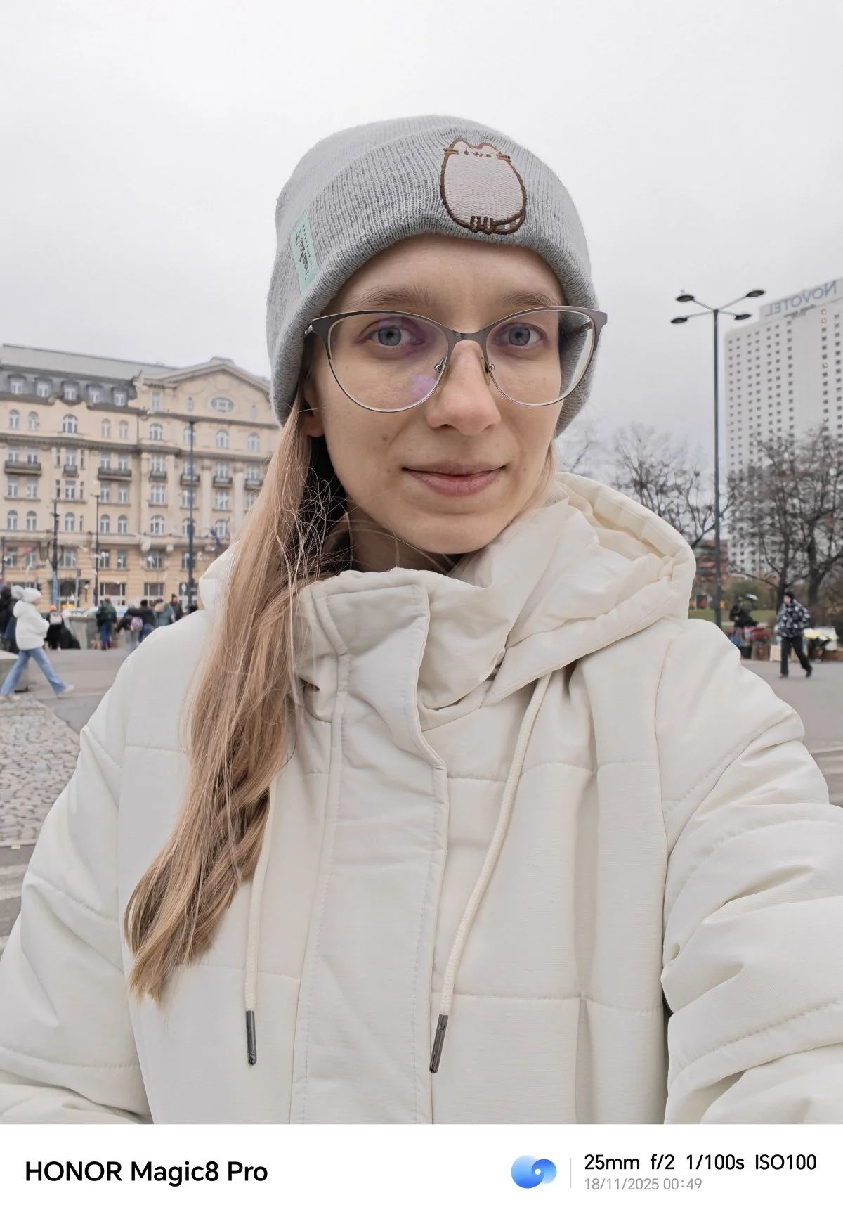 HONOR Magic8 Pro pozwala na nagrywanie wideo w 4K przy 60 klatkach na sekundę wszystkimi obiektywami, z możliwością płynnego przełączania się między nimi w trakcie nagrywania. Stabilizacja działa tu bardzo dobrze, ale jakość samego obrazu moim zdaniem pozostawia wiele do życzenia. Podczas nagrywania za dnia na filmie jest dużo szumu, a detale wskazują na niski bitrate nagrania.