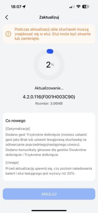 Tym, co wypada jeszcze lepiej od brzmienia, które jest rzekłbym typowe dla słuchawek w tej cenie, jest ANC. Pomimo że producent określa skuteczność jako 27 dB, to miałem wrażenie, że tłumienie hałasów otoczenia było skuteczniejsze niż u rywali w podobnej cenie. Pozwala to odciąć się od wielu niepożądanych dźwięków w trakcie rozmów telefonicznych, które notabene brzmią fenomenalnie z obu stron. W samolocie… nie oczekujcie cudów, ale będzie odczuwalnie ciszej. Nie jest to poziom AirPodsów, ale cena jest też kilkukrotnie niższa.