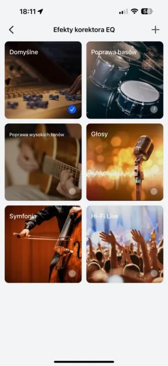 AI Life to aplikacja niezmiennie prosta w obsłudze i charakteryzująca się schludnym, czytelnym interfejsem. Pozwala ona zaktualizować firmware słuchawek, sprawdzić stan naładowania słuchawek i etui, włączyć ANC lub tryb transparentności, poznać obsługiwane przez słuchawki gesty i je zmodyfikować czy sprawdzić, z jakimi urządzeniami słuchawki są sparowane. Aplikacja oferuje też funkcję znalezienia słuchawek, możliwość przeprowadzenia testu dopasowania słuchawek oraz kilka efektów korektora do wyboru. W tej ostatniej kwestii mamy trzy opcje – ustawienie domyślne, poprawę basów i poprawę wysokich tonów. Pełnego korektora w AI Life nie znajdziemy.