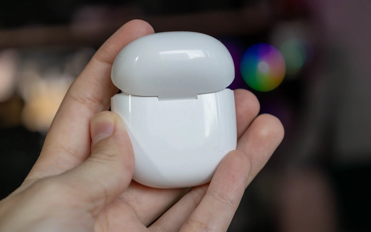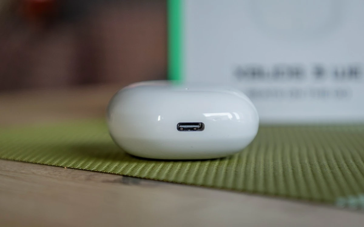 Etui zawiera też oczywiście diodę stanu oraz Port USB-C, a w jego wnętrzu skrywają się słuchawki osadzone w magnetycznych dokach. Wyjmowanie ich z doków oraz wkładanie ich z powrotem na miejsce nie sprawia żadnych problemów.