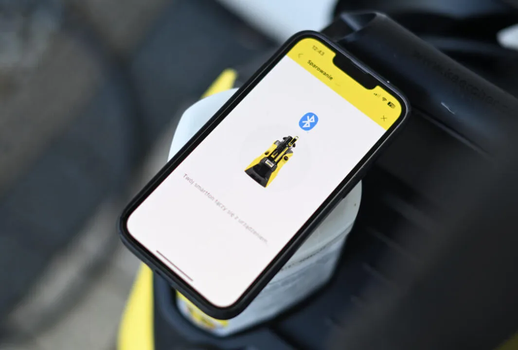 W opakowaniu znajdziemy kod QR, który po zeskanowaniu pozwoli na przypisanie urządzenia do aplikacji. Komunikacja odbywa się przez Bluetooth zatem trzeba znajdować się ze smartfonem blisko samego urządzenia. Co ciekawe, moduł łączności wbudowano nie w myjkę, a w pistolet spryskujący Smart Control z wyświetlaczem LCD.