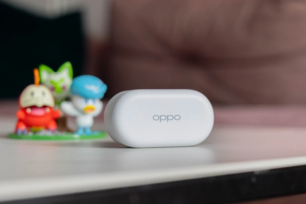 Nowe słuchawki OPPO zostały zamknięte w etui o kształcie niewielkiego pudełeczka z zaokrąglonymi krawędziami. Ma ono nieco zmatowioną, choć śliską w dotyku powierzchnię. Trochę szkoda, że nie zawiera ono zagłębienia, które ułatwiłoby nieco otwieranie jego pokrywy. W jego górnej części znalazło się zaś logo OPPO, z przodu widać diodę stanu, a z tyłu port USB-C. Nie ma tu natomiast żadnych przycisków.