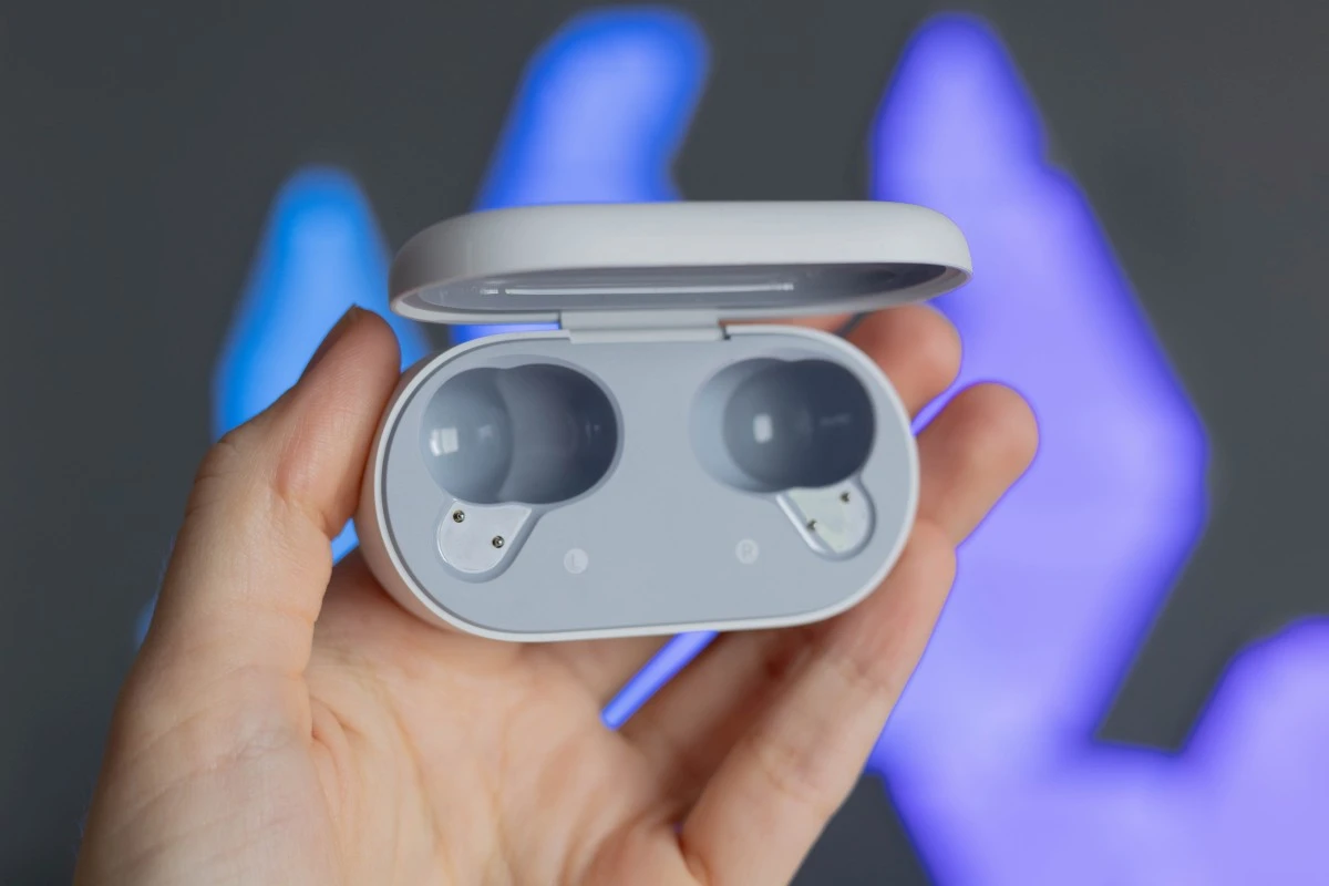 OPPO Enco Buds2 Pro wewnątrz etui mają swoje miejsce w magnetycznych dokach. Wkładanie słuchawek do tych doków jest bardzo wygodne, natomiast przy ich wyjmowaniu za płaskie pałąki czasem trudno chwycić.
