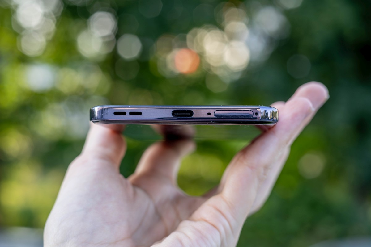 Zawartość ramek OPPO Reno12 Pro 5G jest dość standardowa. Na prawej ramce umieszczono przyciski do zmiany głośności oraz przycisk zasilania, na górnej otwory mikrofonu i głośnika oraz port podczerwieni, a na dolnej port USB-C, zestaw otworów dla kolejnego głośnika i mikrofonu oraz slot na kartę micro SD i karty SIM. Lewa ramka jest wolna od jakichkolwiek dodatków.
