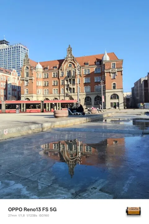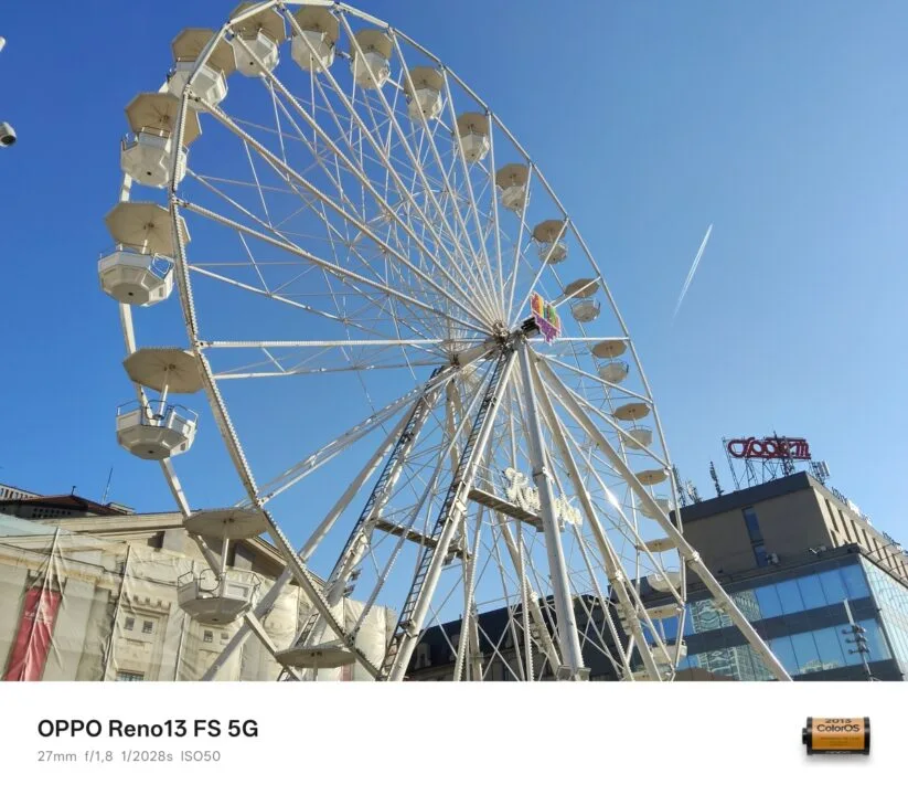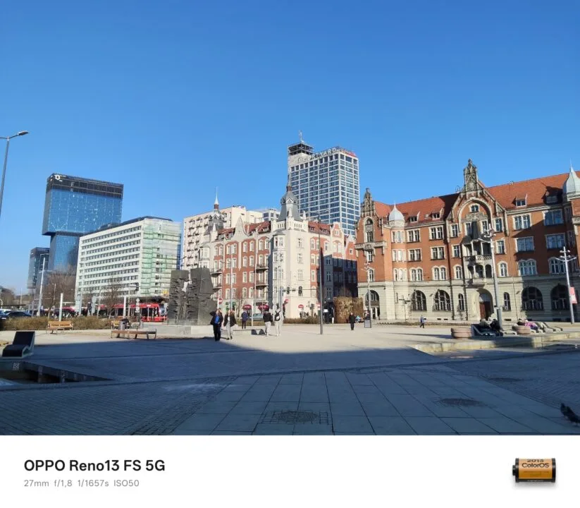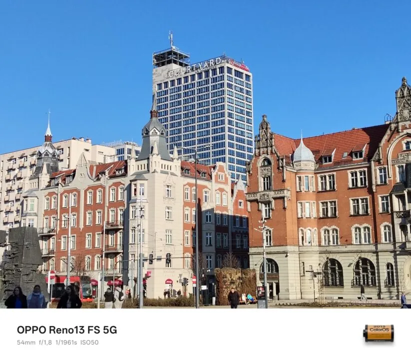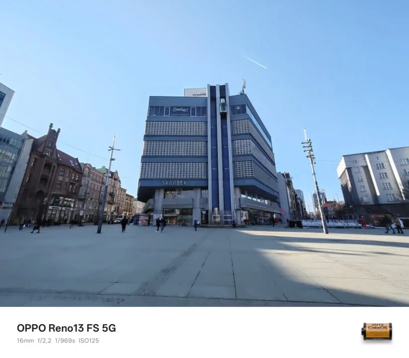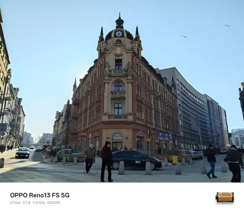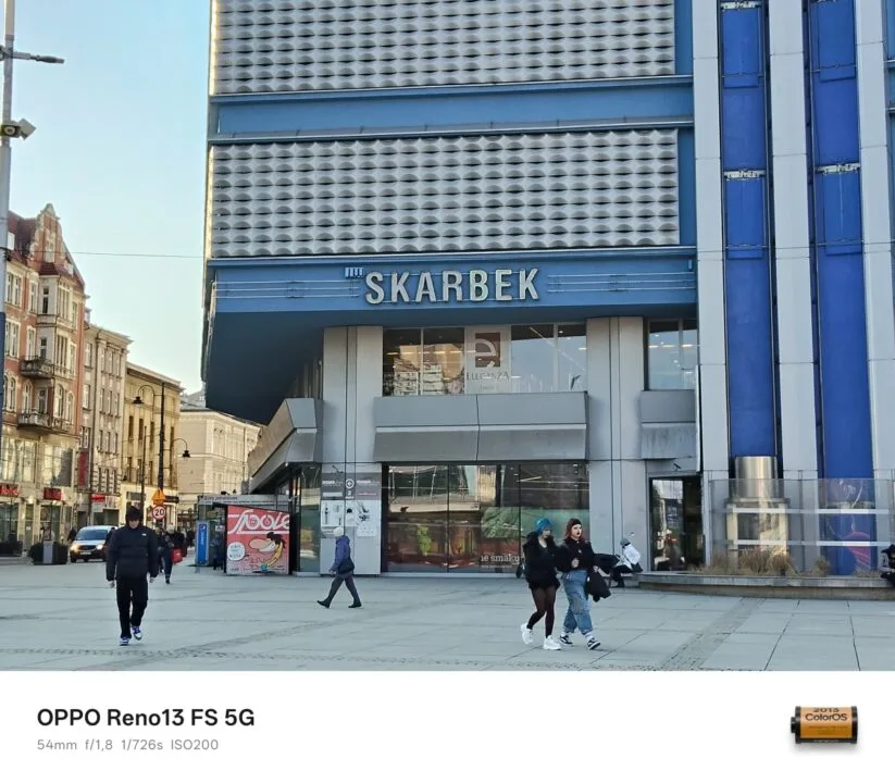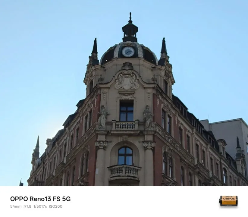 Za dnia tylny aparat OPPO Reno13 FS 5G wypada w większości dobrze, a przynajmniej dopóki korzystamy z jego głównego sensora i dopóki otoczenie jest mocno oświetlone. Im oświetlenia mniej, tym więcej detali na tych fotografiach ginie – najgorzej jest oczywiście nocą. Ba, zdjęcia nocne są w przeważającej większości fatalne. Zadowala kontrast fotografii z głównej jednostki, natomiast w kwestii odwzorowania kolorów widać niedociągnięcia. Zdarza się, że wiele barw, na czele z czerwienią i błękitem, charakteryzuje się zbyt małym nasyceniem.