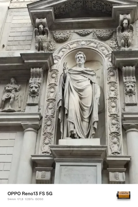 OPPO Reno13 FS 5G ma z tyłu trzy jednostki fotograficzne, natomiast w zasadzie tylko jedna z nich – ta główna – jest jednostką użyteczną w praktyce. Dysponuje ona bowiem rozdzielczością 50 MP i optyczną stabilizacją obrazu. Oprócz niej mamy tylko sensor 8 MP o z obiektywem ultraszerokokątnym i sensor 2 MP do zdjęć makro. Teleobiektyw jest zarezerwowany dla modelu Pro.