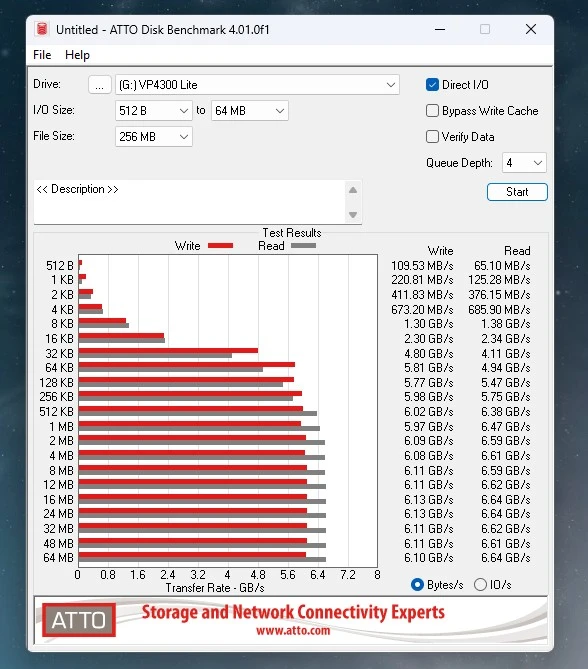 Z racji braku DRAM, Patriot Viper VP4300 Lite potrafi zrobić użytek z pamięci RAM obecnej w komputerze, wykorzystując maksymalnie 32 GB jako cache (HMB). Oczywiście nie osiąga wtedy swojej szczytowej wydajności. Wręcz przeciwnie. Po przepełnieniu bufora pSLC, wynoszącego nieco ponad 600 GB, prędkość zapisu danych spada do zaledwie ok. 520-610 MB/s. Malutko. Na pocieszenie: bufor regeneruje się naprawdę szybko. Inna dobra wiadomość polega na tym, że Patriot Viper VP4300 Lite nie stracił wiele na wydajności po zapełnieniu ponad 80 procent przestrzeni na dane.