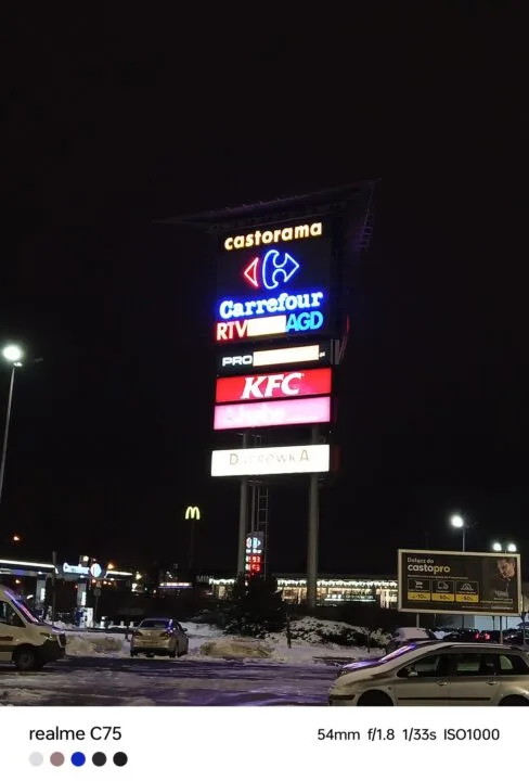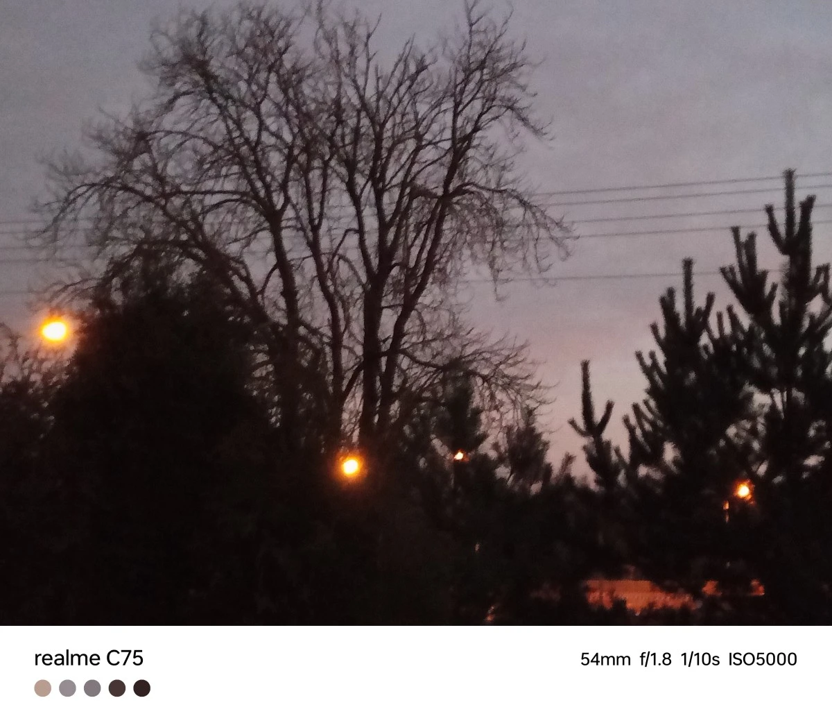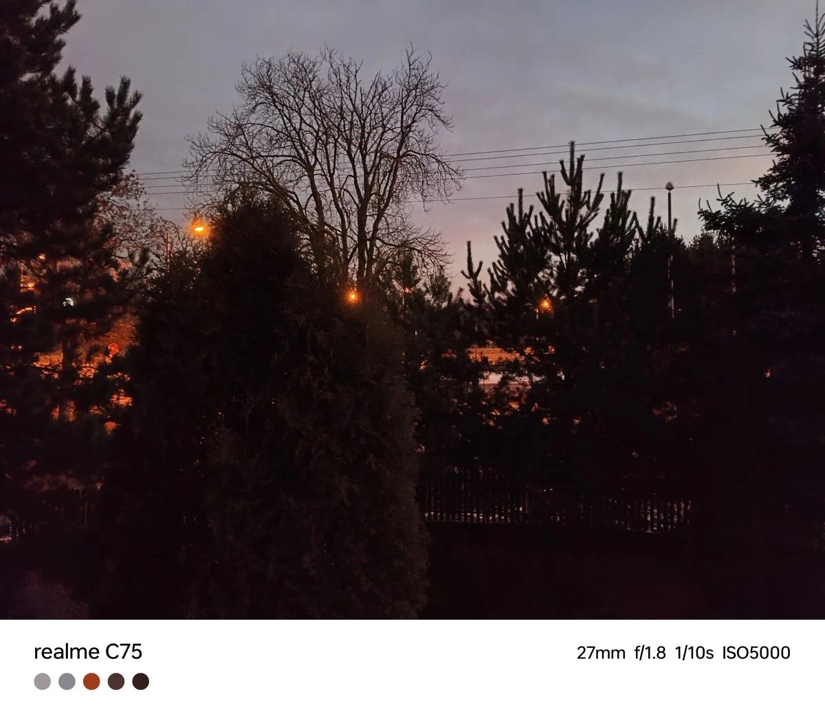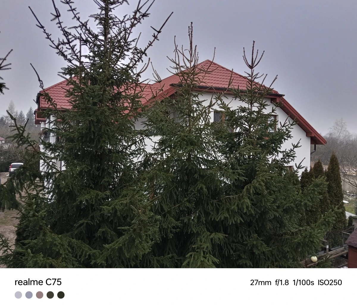 Choć na pleckach Realme C75 widać aż trzy oczka, tylko za jednym z nich skrywa się użyteczny sensor. Tylny aparat smartfonu składa się bowiem z sensora o rozdzielczości 50 MP z PDAF, ale bez optycznej stabilizacji, a także dwóch sensorów pomocniczych o nieznanych parametrach. Aparat przedni to zaś sensor o rozdzielczości 8MP. Ale jak te sensory wypadają w praktyce?