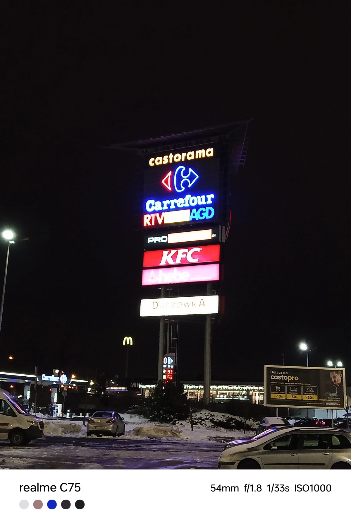 Jako że tylny aparat Realme C75 nie posiada optycznej stabilizacji i wykorzystuje sensor dość mały, to pozwala wykonać ładne zdjęcia tylko wtedy, gdy mamy do czynienia z odpowiednim oświetleniem i statycznymi obiektami. Im ciemniejsze otoczenie, tym więcej szumu i miękkości na fotografiach. Poza tym zdjęcia łatwo poruszyć, zwłaszcza jeśli ich bohaterami są ludzie lub zwierzęta. Niemniej, widoczne na zdjęciach kolory są zbliżone do rzeczywistych.