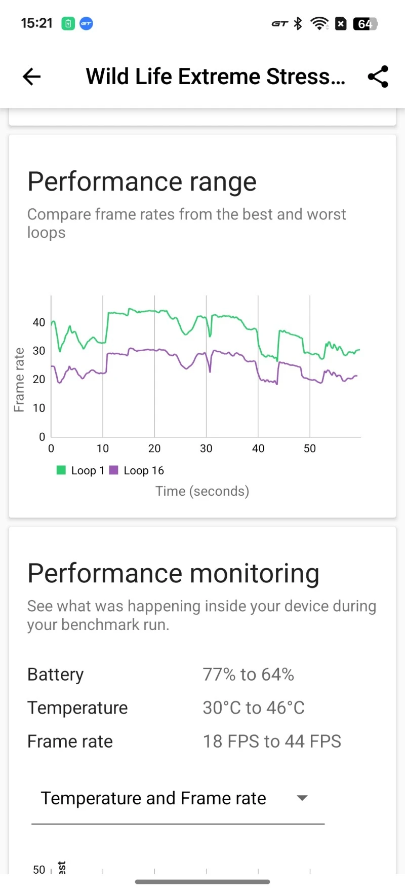 Stress test przeprowadzony w aplikacji 3DMark (Wild Life Extreme) niestety bardzo szybko doprowadza Realme GT 7 Pro do stanu niemalże parzącego. Co gorsza, smartfon miewa problemy z ukończeniem tego testu, i to mimo aktualizacji, które otrzymał na przestrzeni ostatnich dni. Wyniki jednego z testów, które udało się ukończyć, przedstawiłam na poniższych zrzutach ekranu.