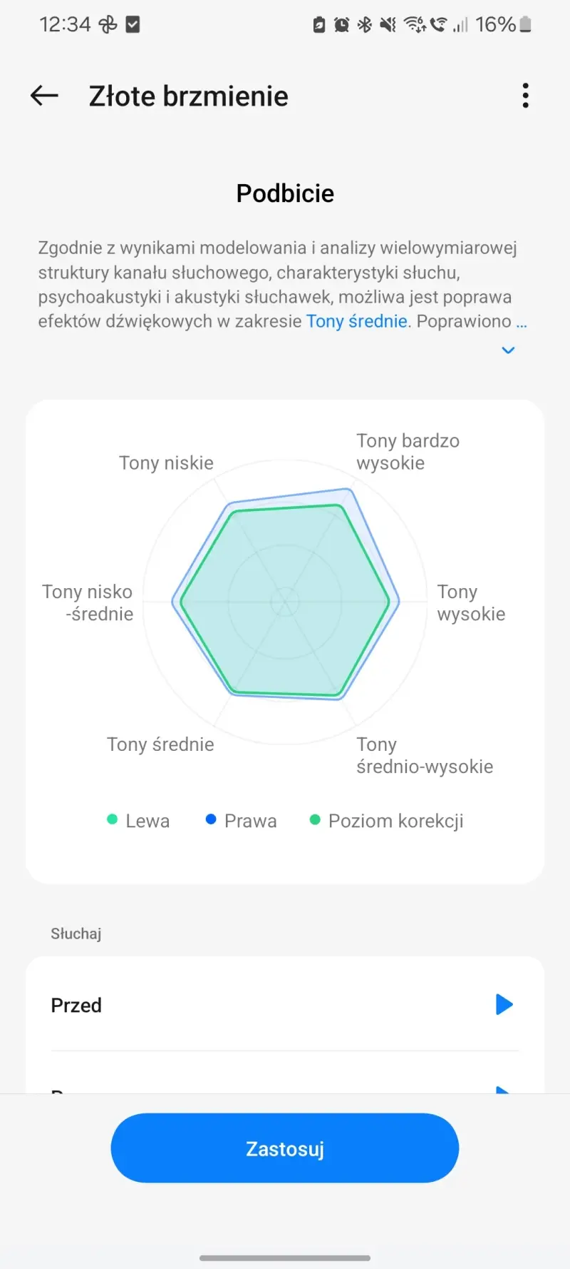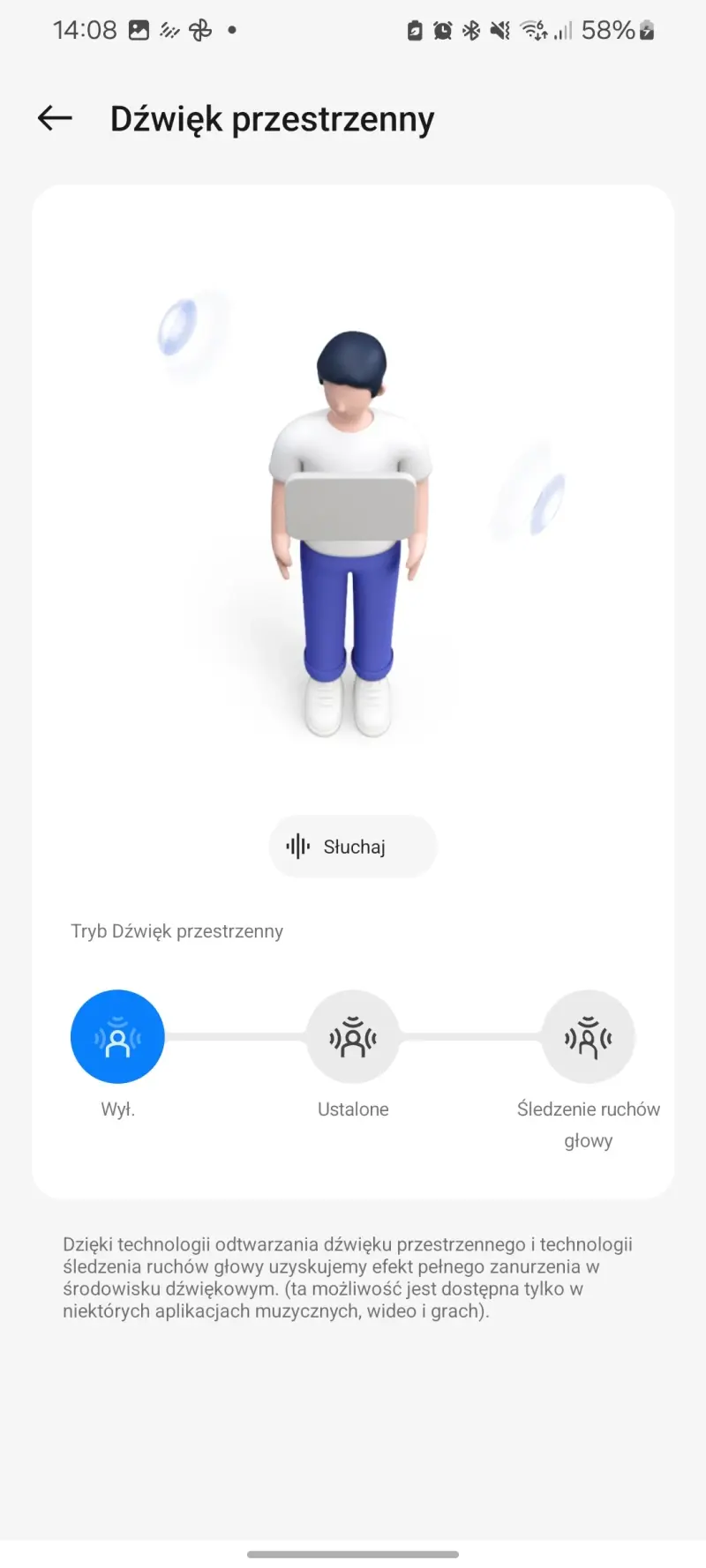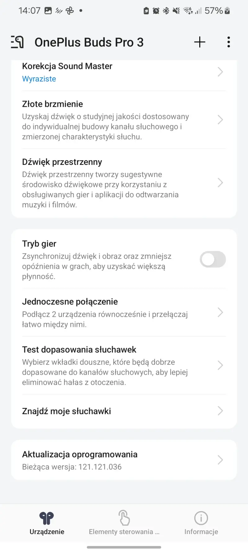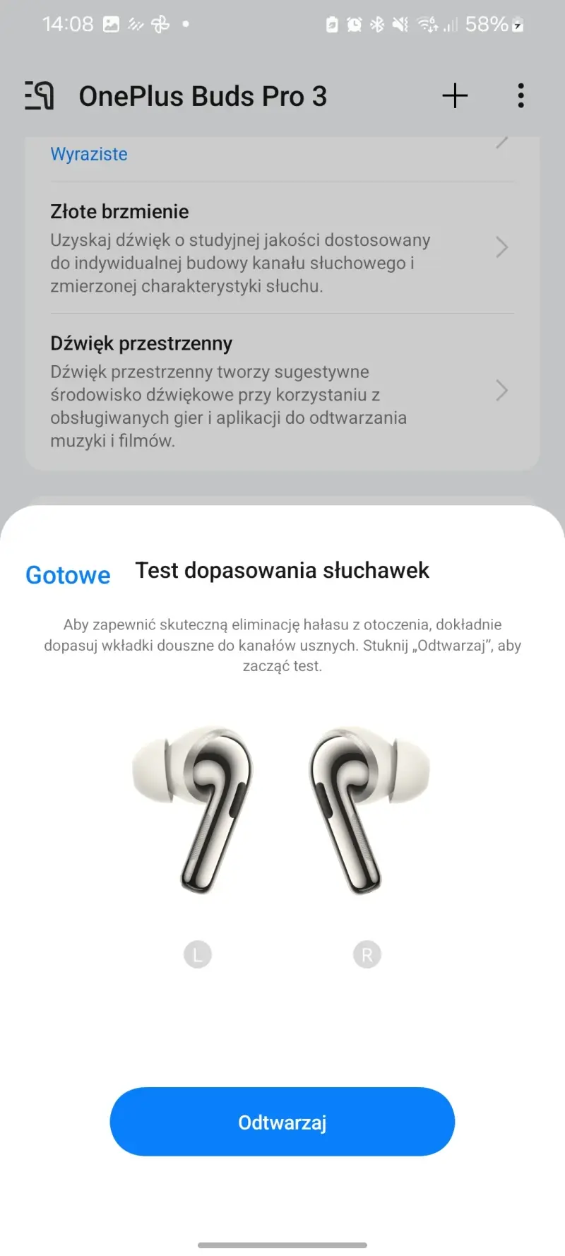 Moje doświadczenia pokazały mi też, że warto przeprowadzić w aplikacji HeyMelody test słuchu i skorzystać z funkcji Złote brzmienie. Dzięki niej wrażenia z odsłuchu się rzeczywiście poprawiają. Jeśli zaś chodzi o dźwięk przestrzenny, to choć można go w OnePlus Buds Pro 3 włączyć, nie warto robić tego, jeśli zamierzamy akurat słuchać muzyki.
