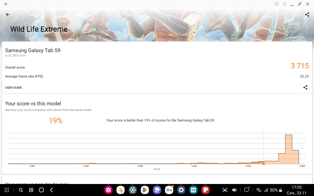 Żeby nie być gołosłownym, przeprowadziłem kilka testów wydajności. Benchamrki PCMark i 3DMark jasno wykazały, że Samsung Galaxy Tab S9 to nie jest bynajmniej jakiś słabiak: