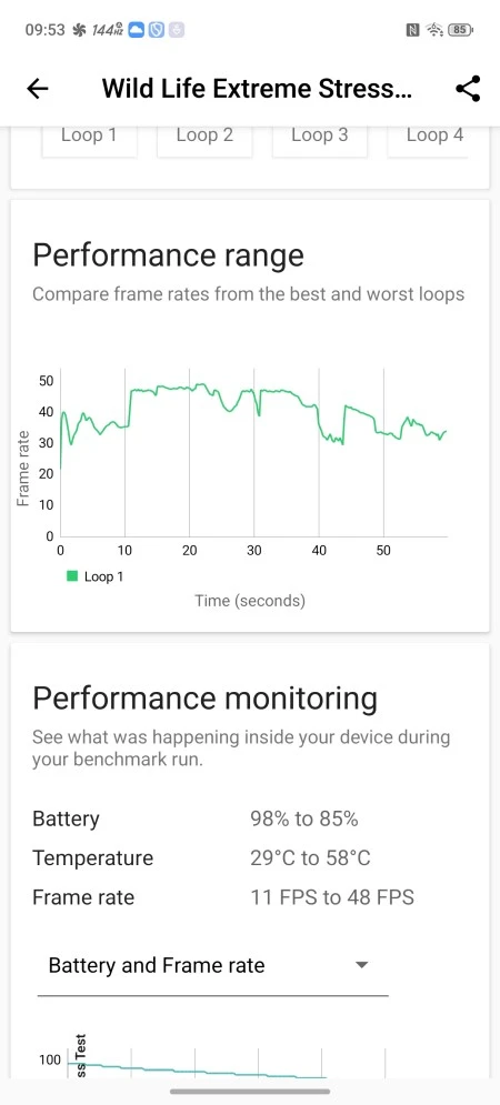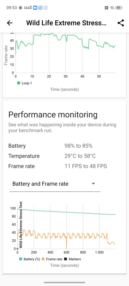 Subiektywnie to, co widać na ekranie, wygląda znakomicie i trudno się do czegoś przyczepić. W trybie auto wyświetlacz w intensywnym świetle bez problemu przebija granicę 1500 nitów, co jest zdumiewająco dobrym wynikiem. A co z tym odświeżaniem 144 Hz? Realnie do wyboru użytkownik ma tryby 60, 90, 120 i 144 Hz. W trybie auto smartfon przełącza się pomiędzy odświeżaniem 60 i 120 Hz. Mało która gra wspiera 144 Hz i trzeba mieć na uwadze, że na liście jest około kilkanaście tytułów.