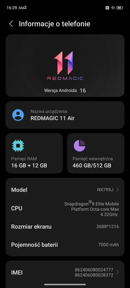 | System operacyjny: | Android 16 z RedMagic OS 11 |