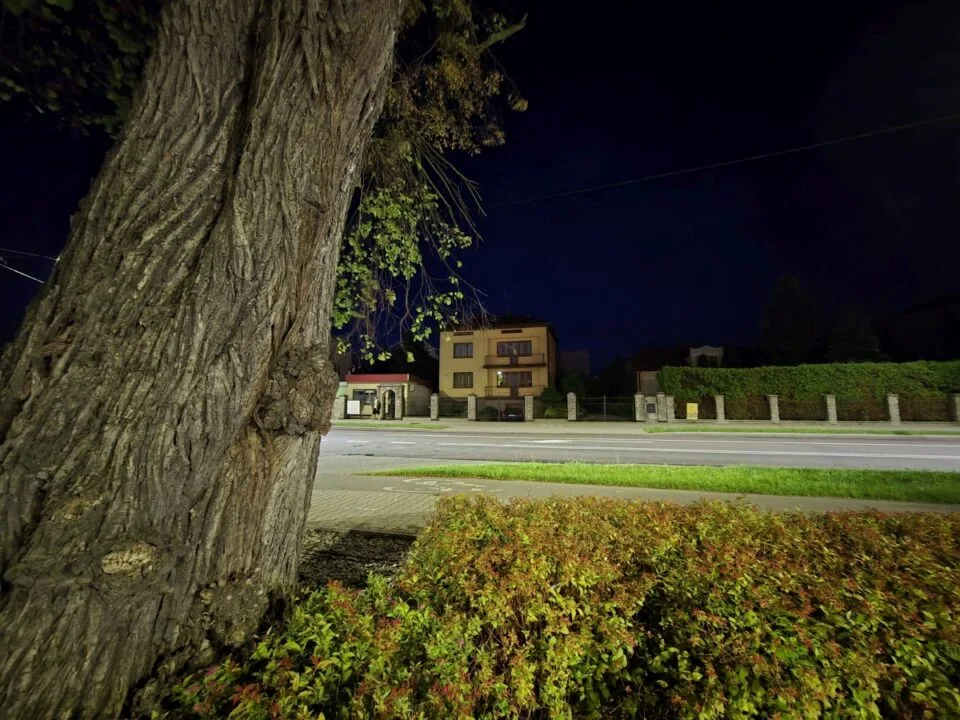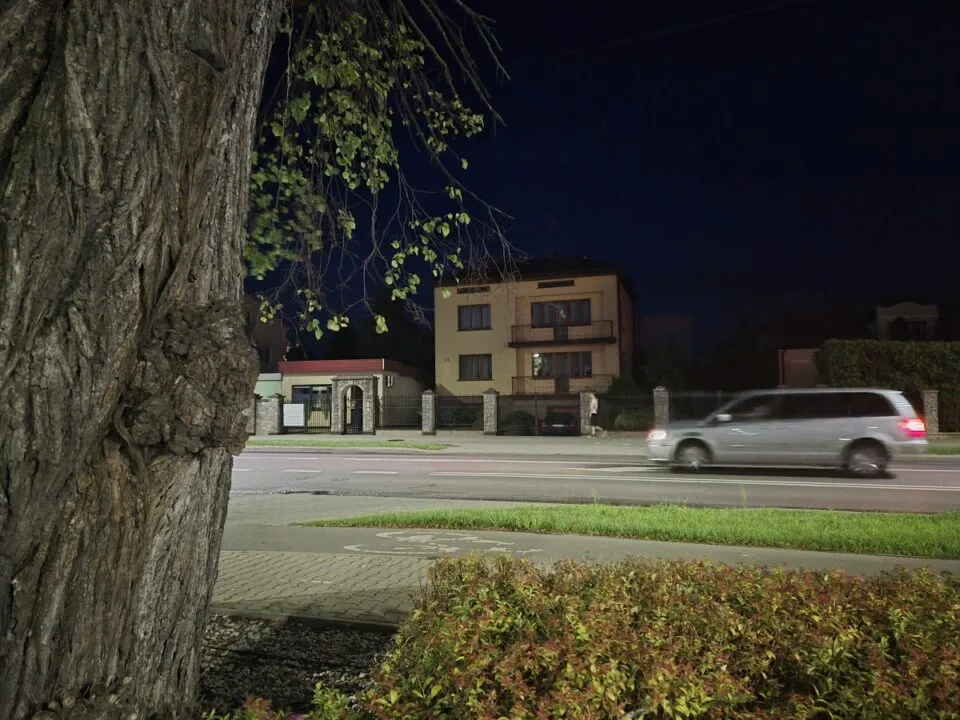 Nocą na fotografiach widać więcej niedociągnięć, na czele z szumem. Ten jest jednak częściowo niwelowany w trybie nocnym. Szkoda natomiast, że automatyczne wykrywanie sceny nocnej w podstawowym trybie fotograficznym nie daje takich rezultatów, jak robienie zdjęć właśnie w trybie nocnym.
