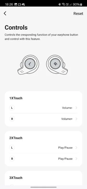 W aplikacji możemy regulować wszystkie funkcje słuchawek, zaczynając od trybu pracy ANC, poprzez ustawienia dźwięku, na sterowaniu dotykowym kończąc. Jest również funkcja wyszukiwania zagubionych słuchawek, a więc wszystko, czego oczekiwałbym od nowoczesnych TWS-ów.