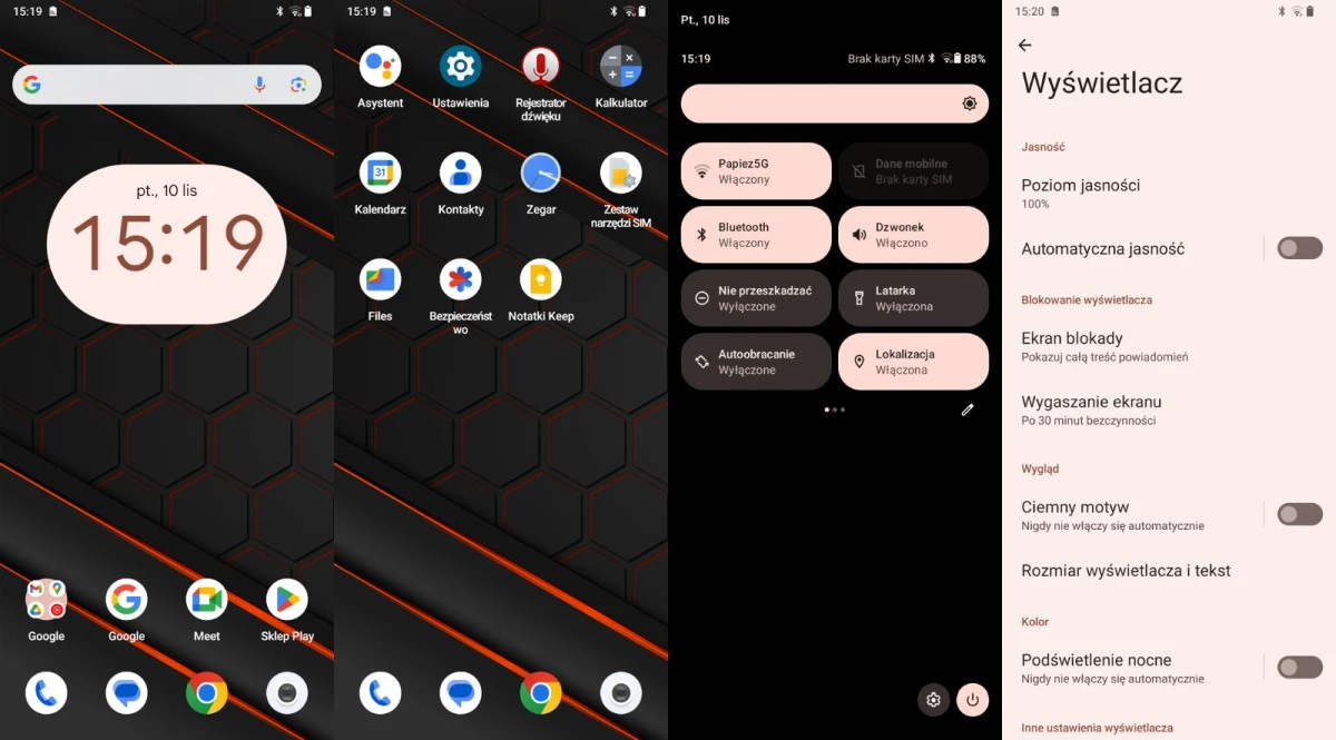 W ustawieniach urządzenia możemy przełączyć się na ciemny motyw, zmienić rozmiar czcionki, zmienić czas wygaszania ekranu, aktywować automatyczne przełączanie się na podświetlanie nocne czy wyłączyć automatyczne obracanie ekranu. Niestety poza tym nie możemy skorzystać z wielu więcej opcji zarządzania wyświetlaczem.