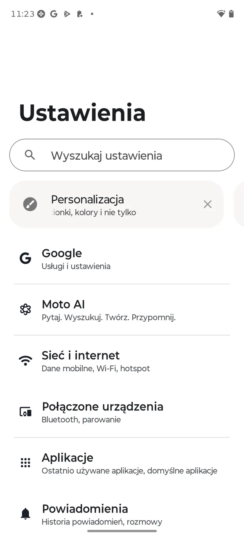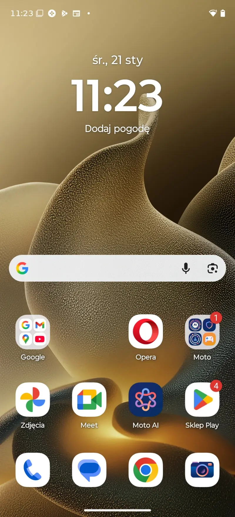 Android 16 nie jest tu takim zupełnie czystym Androidem, ale Androidem z pewnymi modyfikacjami producenta, określanym mianem Hello UI. Motorola po prostu dodała tu kilka swoich aplikacji, własną czcionkę i pewne funkcje. Ogólnie rzecz biorąc jest jednak schludnie i czytelnie. Całość działa płynnie, a obsługuje się ją intuicyjnie. Opcji personalizacji i dostępnych motywów mogłoby być nieco więcej.