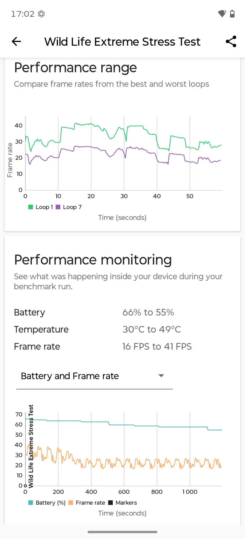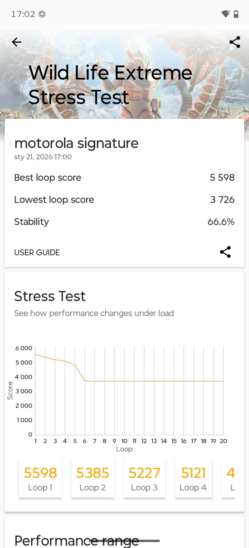 Stress test pokazał, że Motorola Singature nie jest mistrzem w rozpraszaniu ciepła, natomiast po smartfonie o tak cienkiej konstrukcji i tak spodziewałam się gorszego wyniku. Dobra wiadomość jest z resztą taka, że w zwykłym użytkowaniu telefon się nie nagrzewa. Dopiero podczas grania jego obudowa robi się ciepła (nie gorąca), ale w takim Genshin Impact i tak spokojnie utrzymuje średnio 59 klatek.