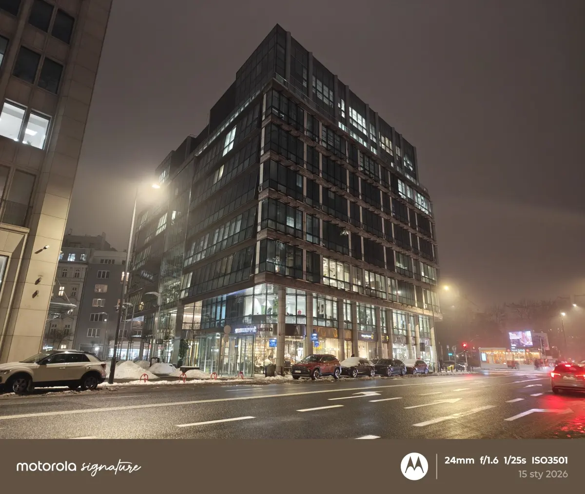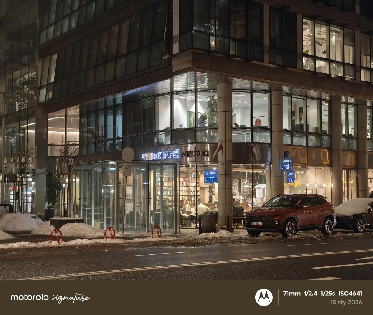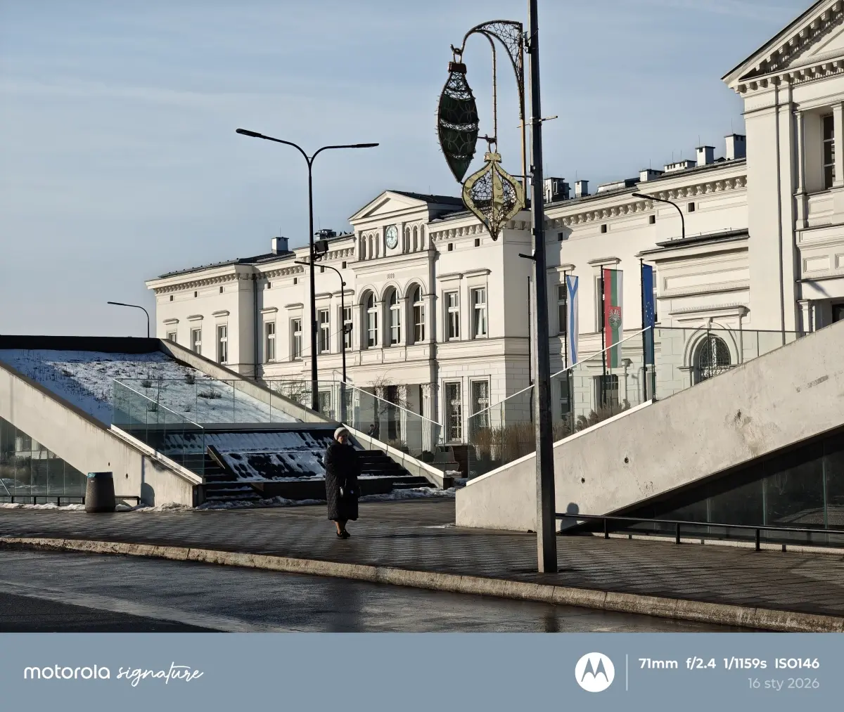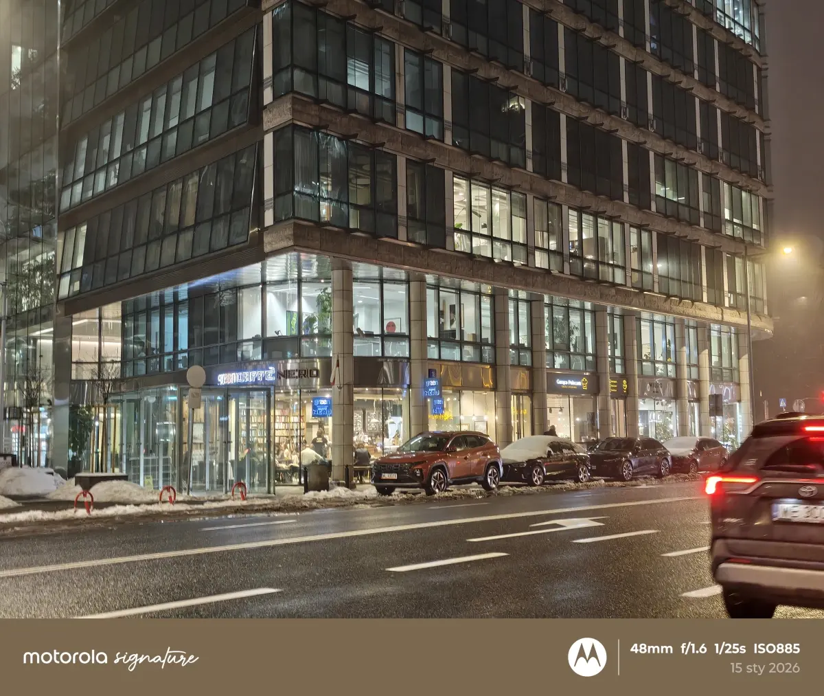 W temacie fotografii Motorola Singature zdaje się oferować więcej niż jakikolwiek inny smartfon Motoroli, nawet niż Motorola Edge 50 Ultra, której najpewniej jest następcą (Motorola Edge 60 Ultra nigdy nie zadebiutowała). Z tyłu mamy tu aż trzy sensory o rozdzielczości 50 MP, w tym duży aparat szerokokątny, aparat z peryskopowym teleobiektywem i aparat ultraszerokokątny. Z przodu znalazł się kolejny sensor 50 MP, co ważne z autofokusem. Oczywiście w przypadku aparatu głównego i teleobiektywu nie zabrakło optycznej stabilizacji obrazu. Ale jak te jednostki wypadają w praktyce?
