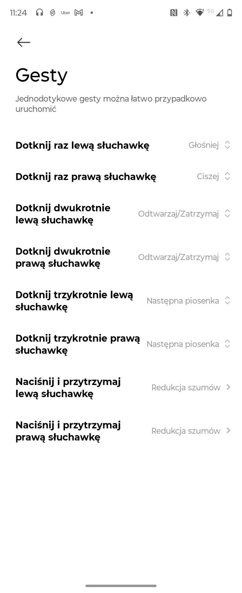 Xiaomi Redmi Buds 8 Lite obsługują gesty w postaci tapnięć (stuknięć) od pojedynczych do wielokrotnych. Można nimi wznawiać/wstrzymywać odtwarzanie, przełączać się między utworami, włączać ANC, a nawet zmieniać głośność. Panele dotykowe rejestrują i rozpoznają te gesty błyskawicznie i bez problemu. Mnie taką pojedynczą formę gestów trudniej jednak zapamiętać niż gesty w różnych postaciach.