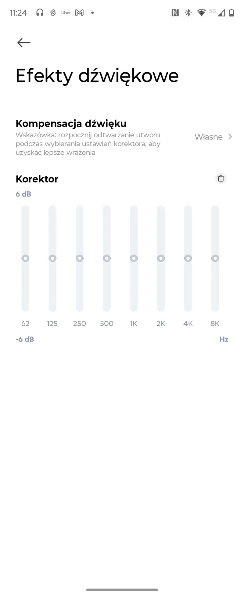 Można w niej sprawdzić stan naładowania słuchawek i etui, włączyć ANC bądź tryb kontaktu, spersonalizować obsługiwane gesty, dokonać aktualizacji oprogramowania układowego czy skorzystać z funkcji szukania słuchawek. Jest też pełnoprawny korektor – zarówno z predefiniowanymi ustawieniami, jak i możliwością ustawienia swojego. Jego obsługa jest jednak mało wygodna, bo jest malutki i trudno na nim trafić w odpowiedni suwak.