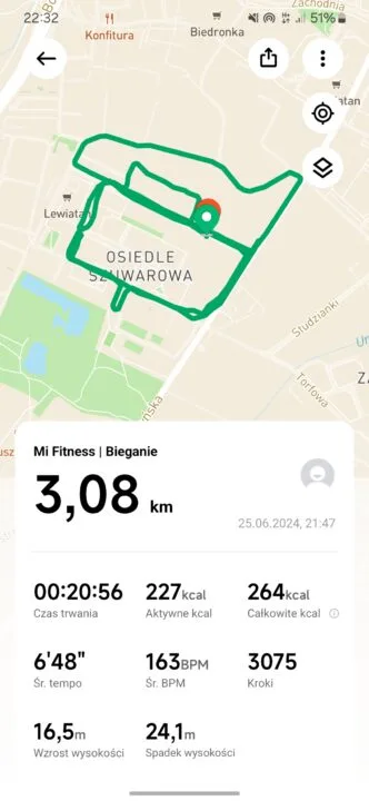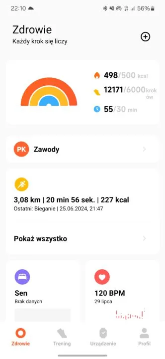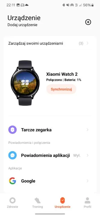Tradycyjnie, do obsługi zegarka z poziomu smartfona służy aplikacja Mi Fitness. To interfejs dobrze znany tym, którzy posiadają lub posiadali jakiekolwiek akcesorium ubieralne Xiaomi. Moim zdaniem apka jest wygodna w użyciu, intuicyjna i ma wszystkie funkcje, których oczekuję. Niestety, mimo faktu, że Mi Fitness jest dostępne również na iOS, testowany zegarek współpracuje tylko z urządzeniami z Androidem.