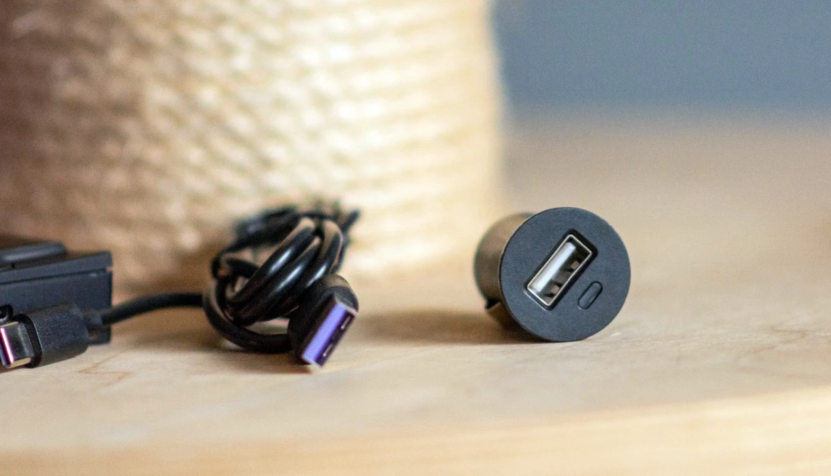 Na obudowie znalazły się dwa gwinty dla akcesoriów montażowych, pozwalające umieścić sprzęt w orientacji poziomej lub pionowej. Urządzenie do zasilania podłącza się przewodem ze złączem USB-C.