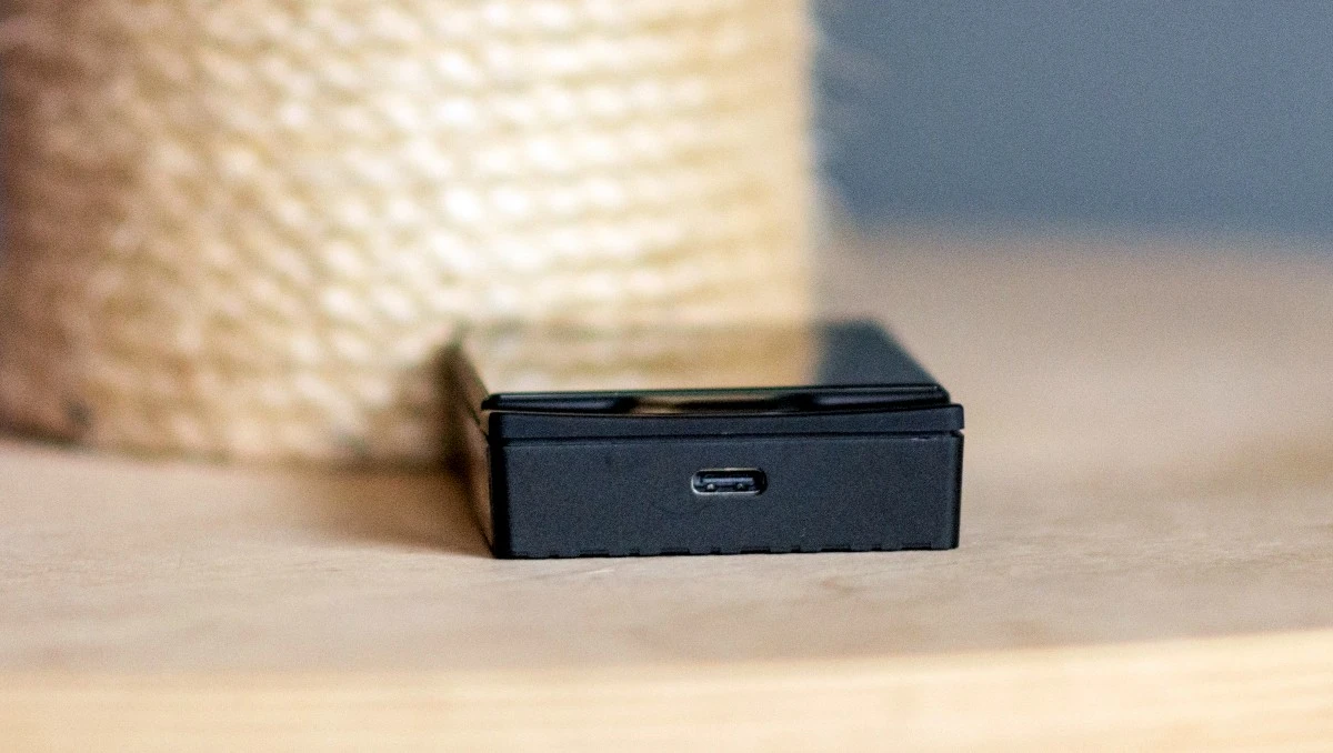 Na obudowie znalazły się dwa gwinty dla akcesoriów montażowych, pozwalające umieścić sprzęt w orientacji poziomej lub pionowej. Urządzenie do zasilania podłącza się przewodem ze złączem USB-C.
